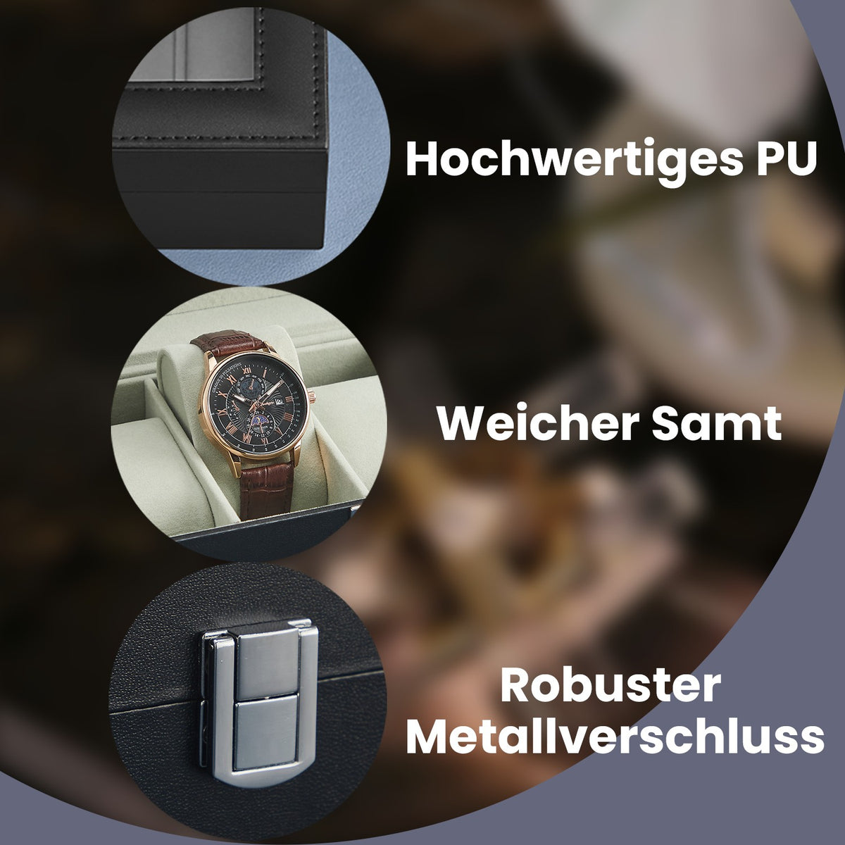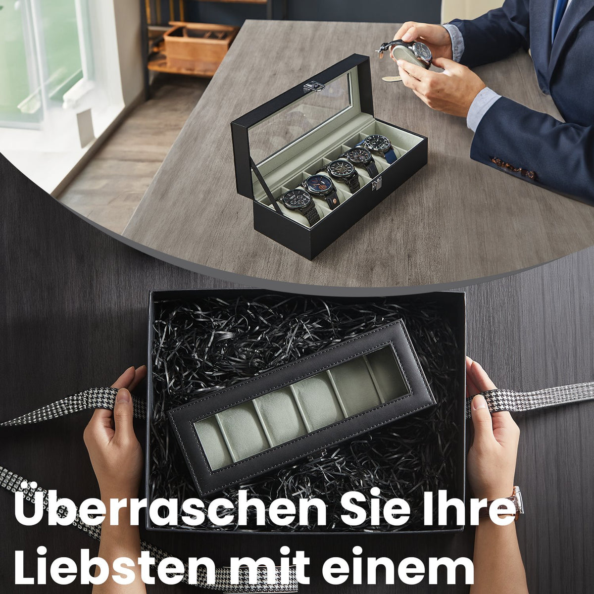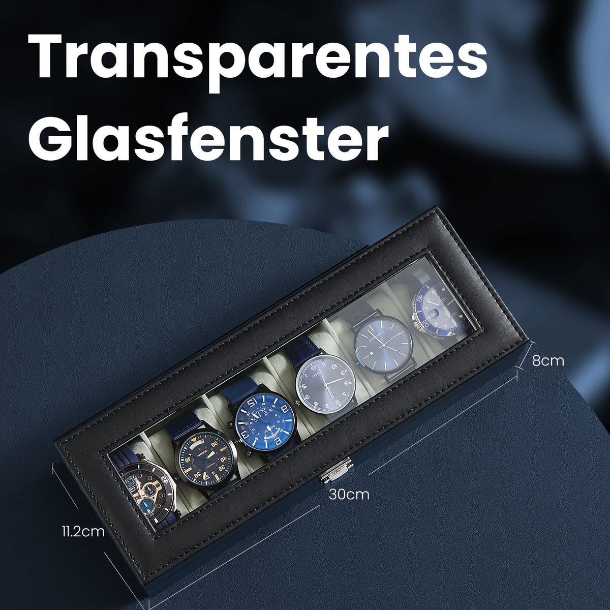 Horlogebox met 6 compartimenten, horlogekast, glazen deksel 30 x 11,2 x 8 cm - JWBB3506BK