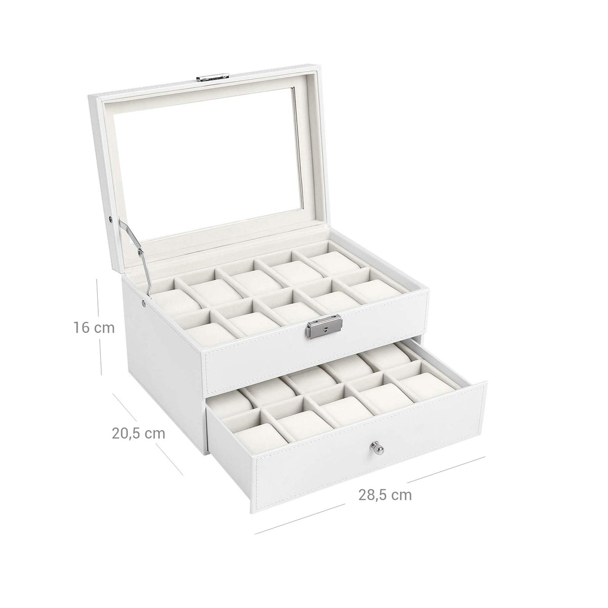 Horlogebox voor 20 horloges wit 28,5 x 15 x 20,5 cm