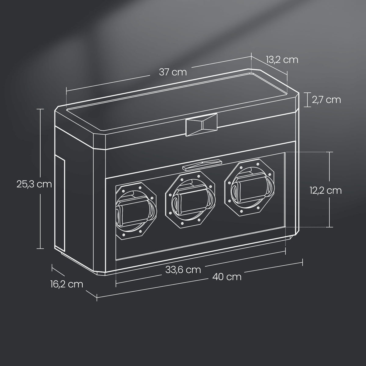 Horlogebox voor 9 horloges, glazen venster aan boven- en voorkant, verstelbare horlogehouder 3 cm
