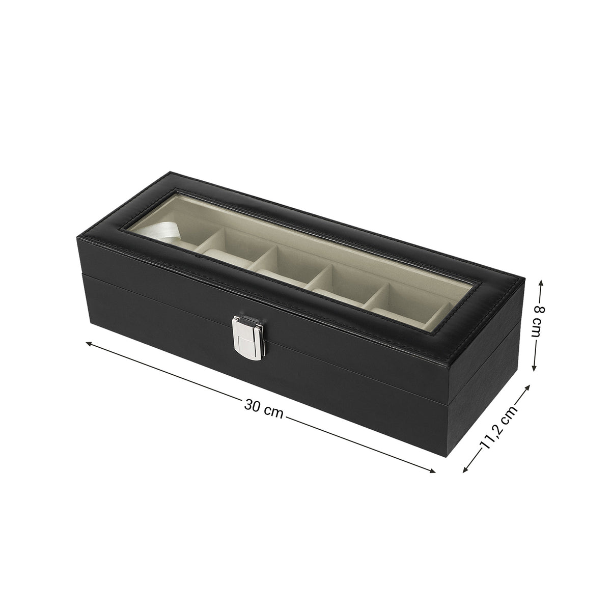 Horlogedoos met glazen deksel zwart 2 x 8 cm