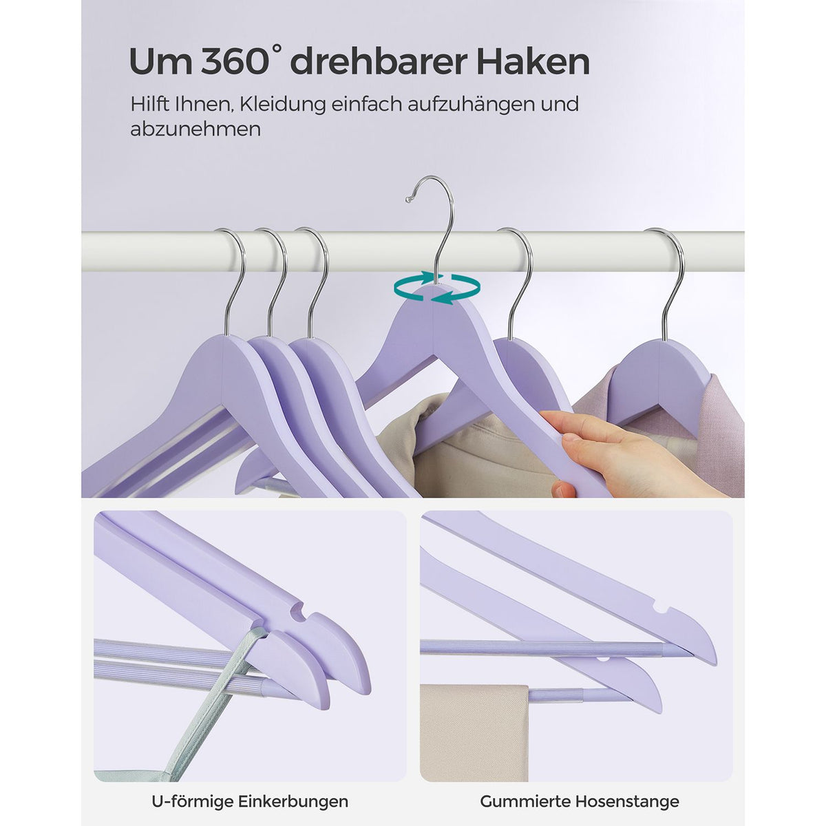 Houten kledinghangers 20 stuks delicaat lila-zilver