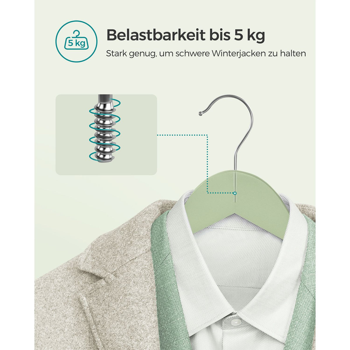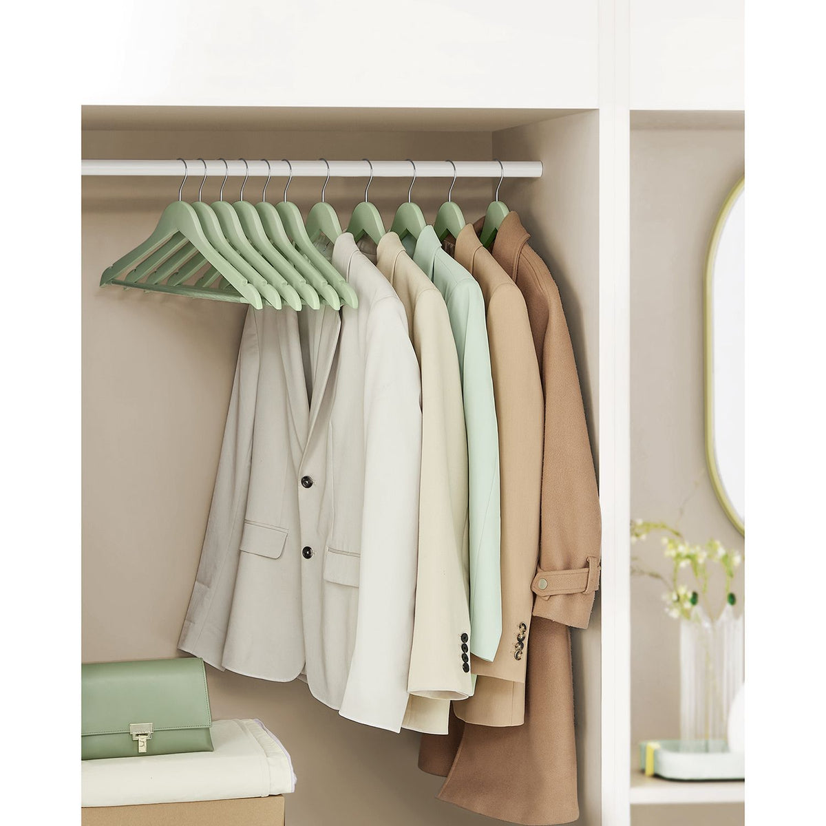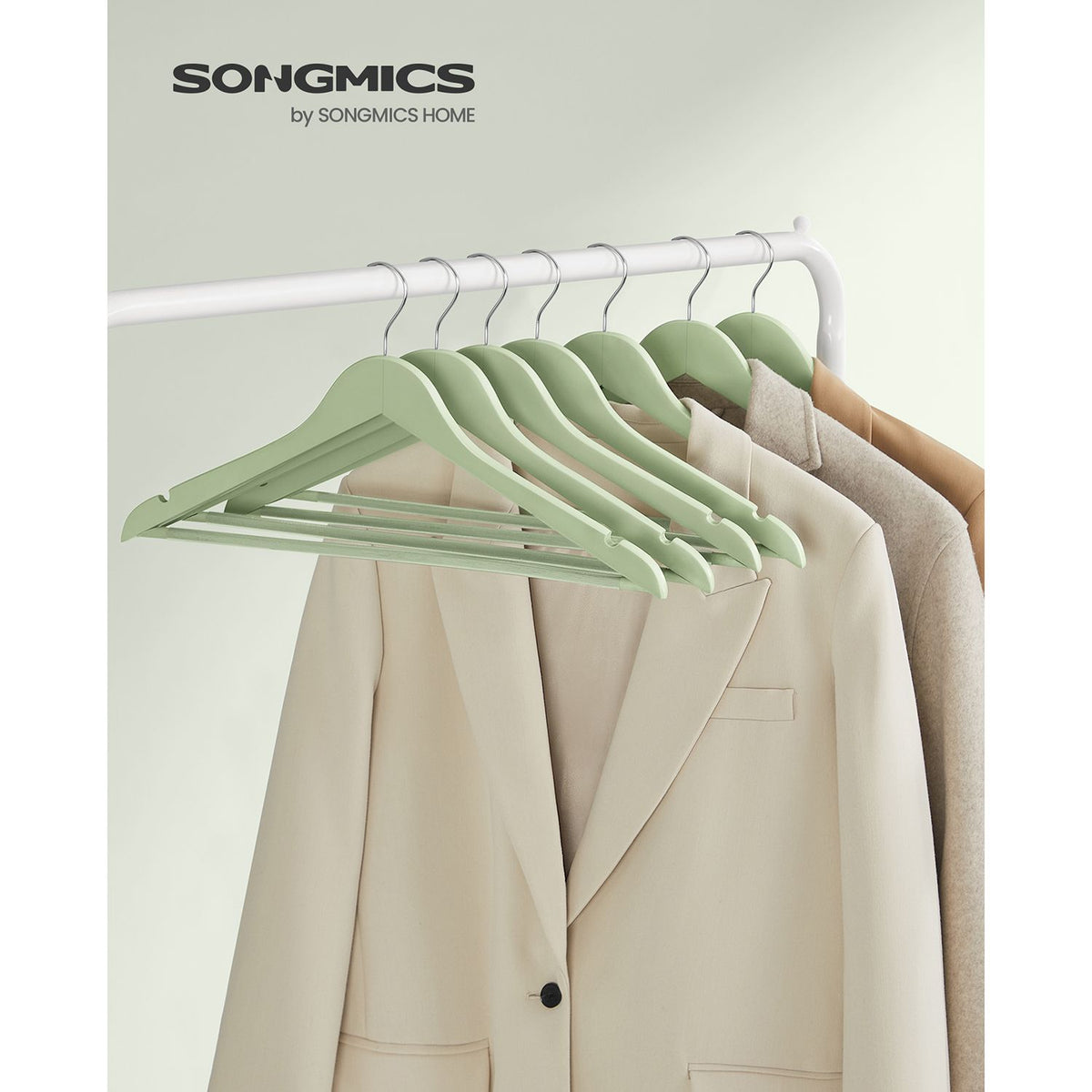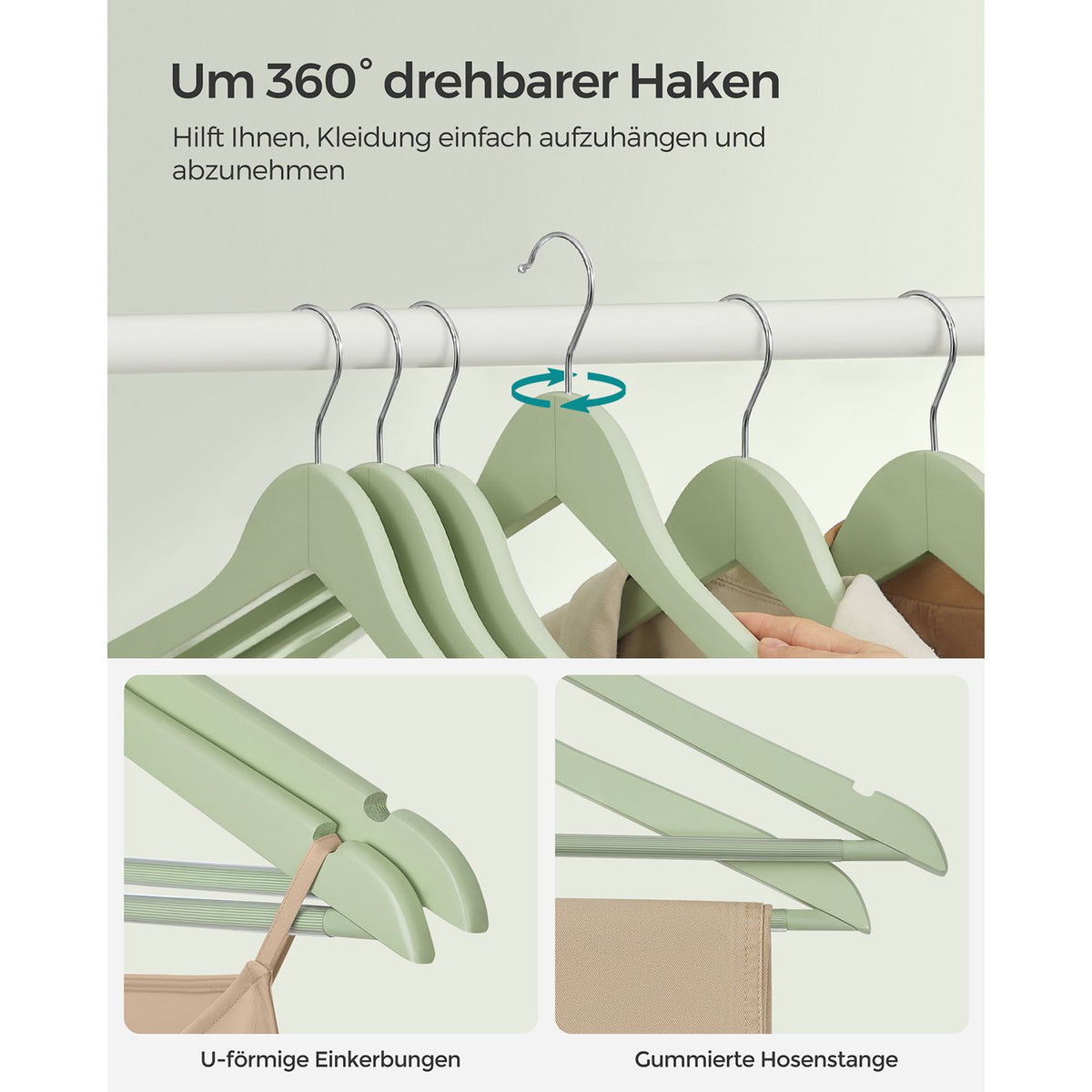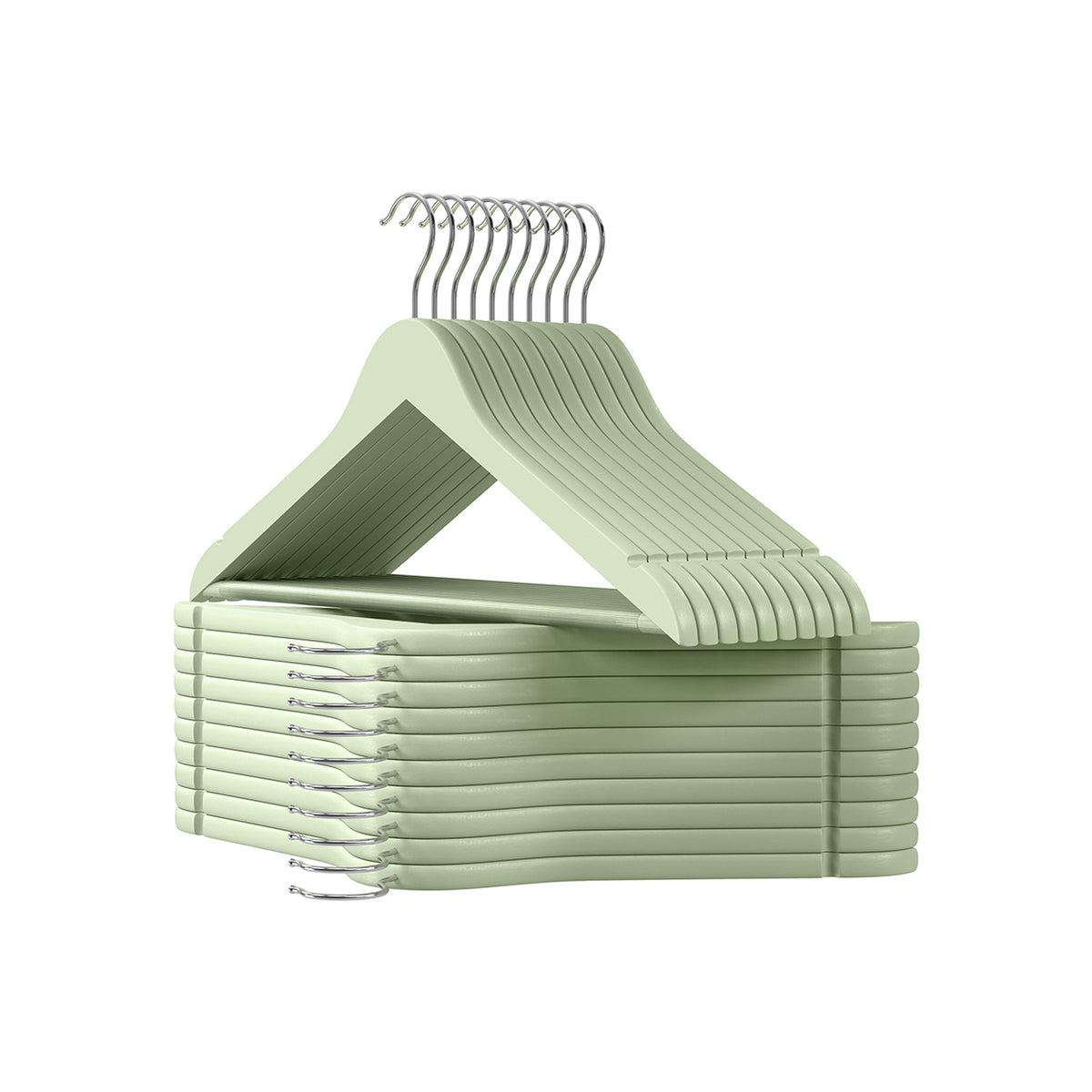 Houten kledinghangers 20 stuks lichtgroen-zilver 2 x 23 cm