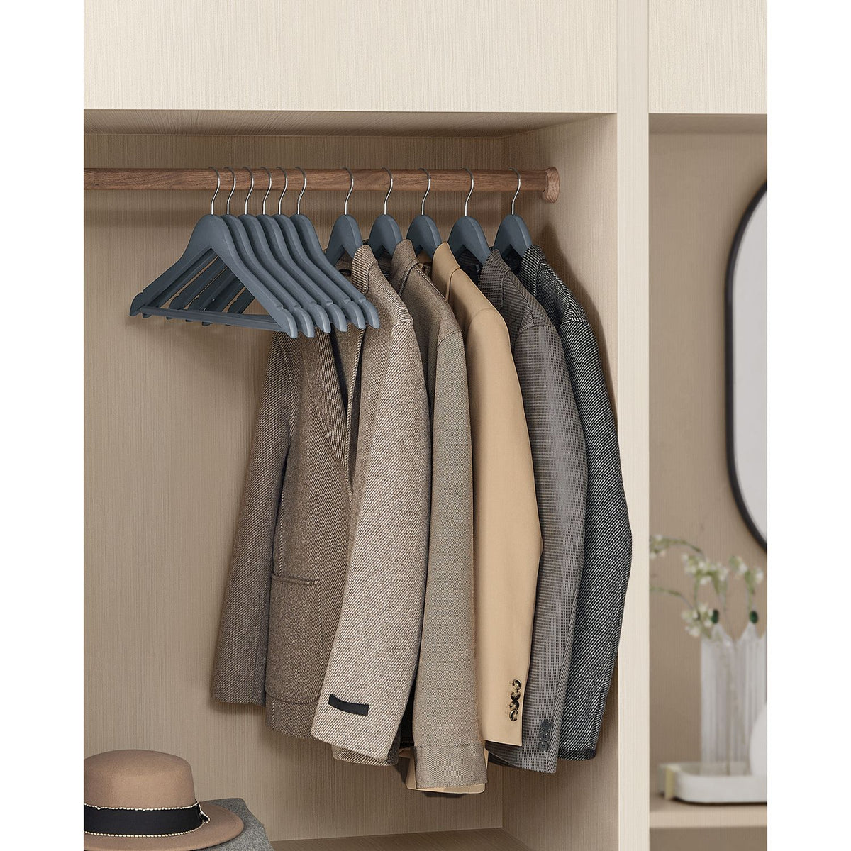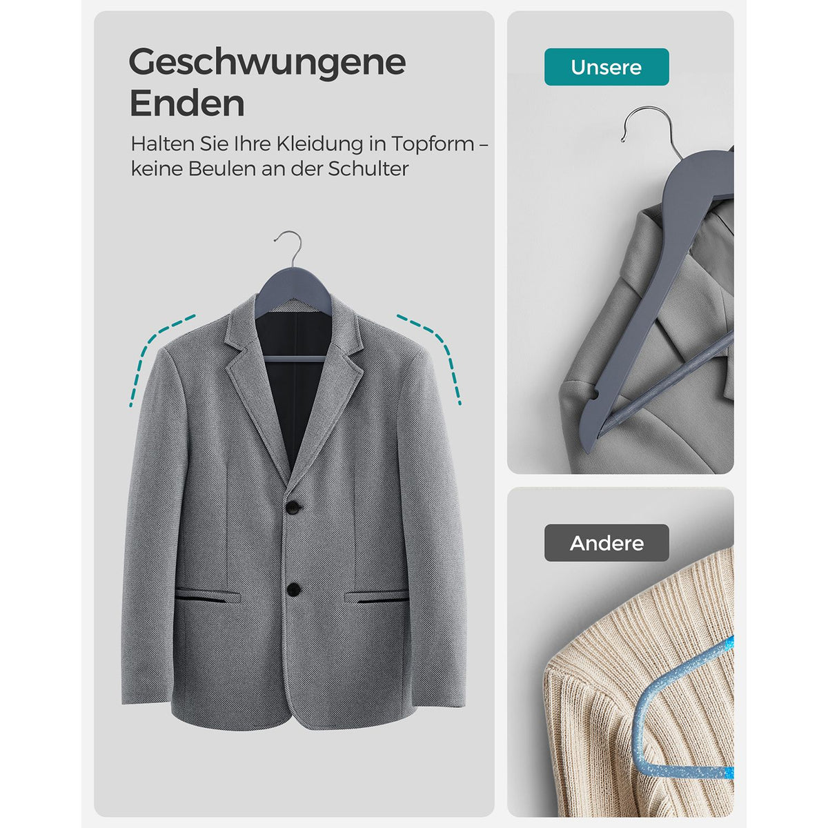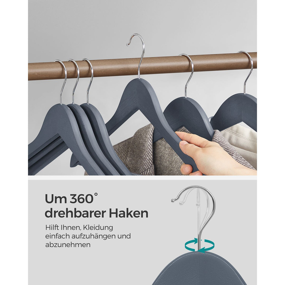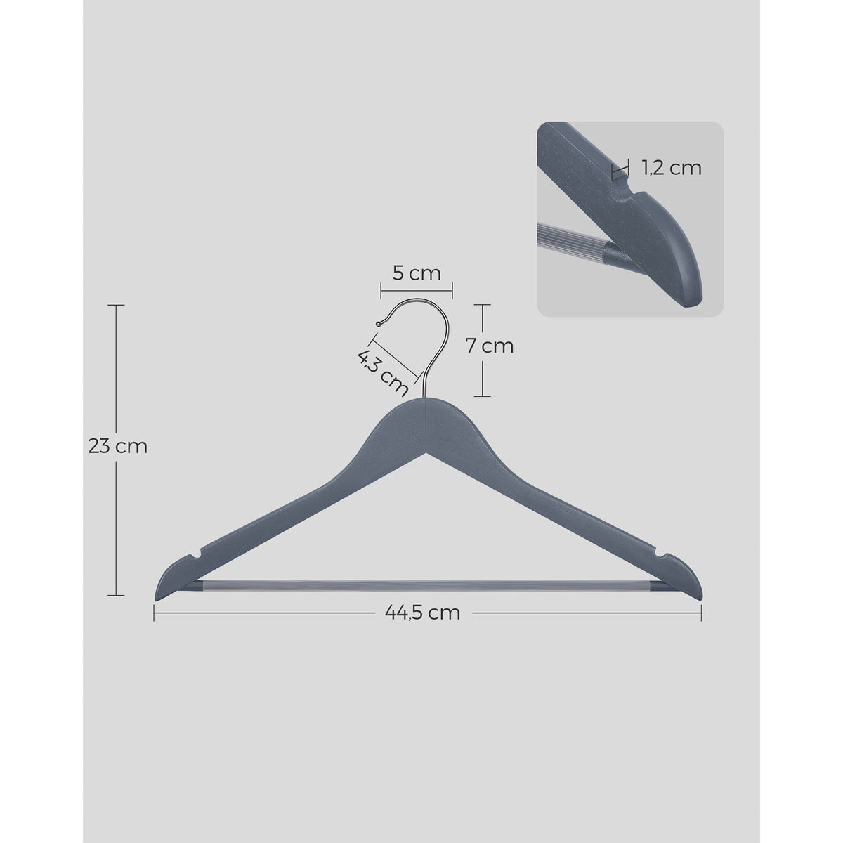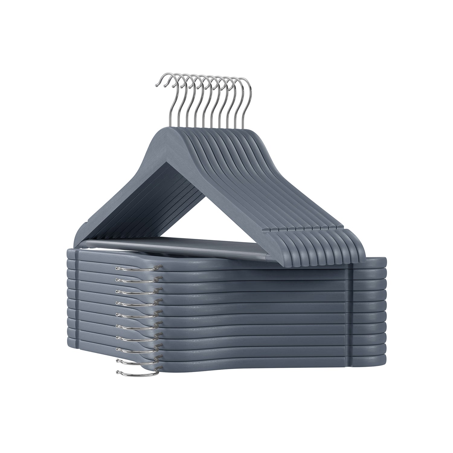 Houten kledinghangers 20 stuks loodgrijs-zilver 2 x 23 cm