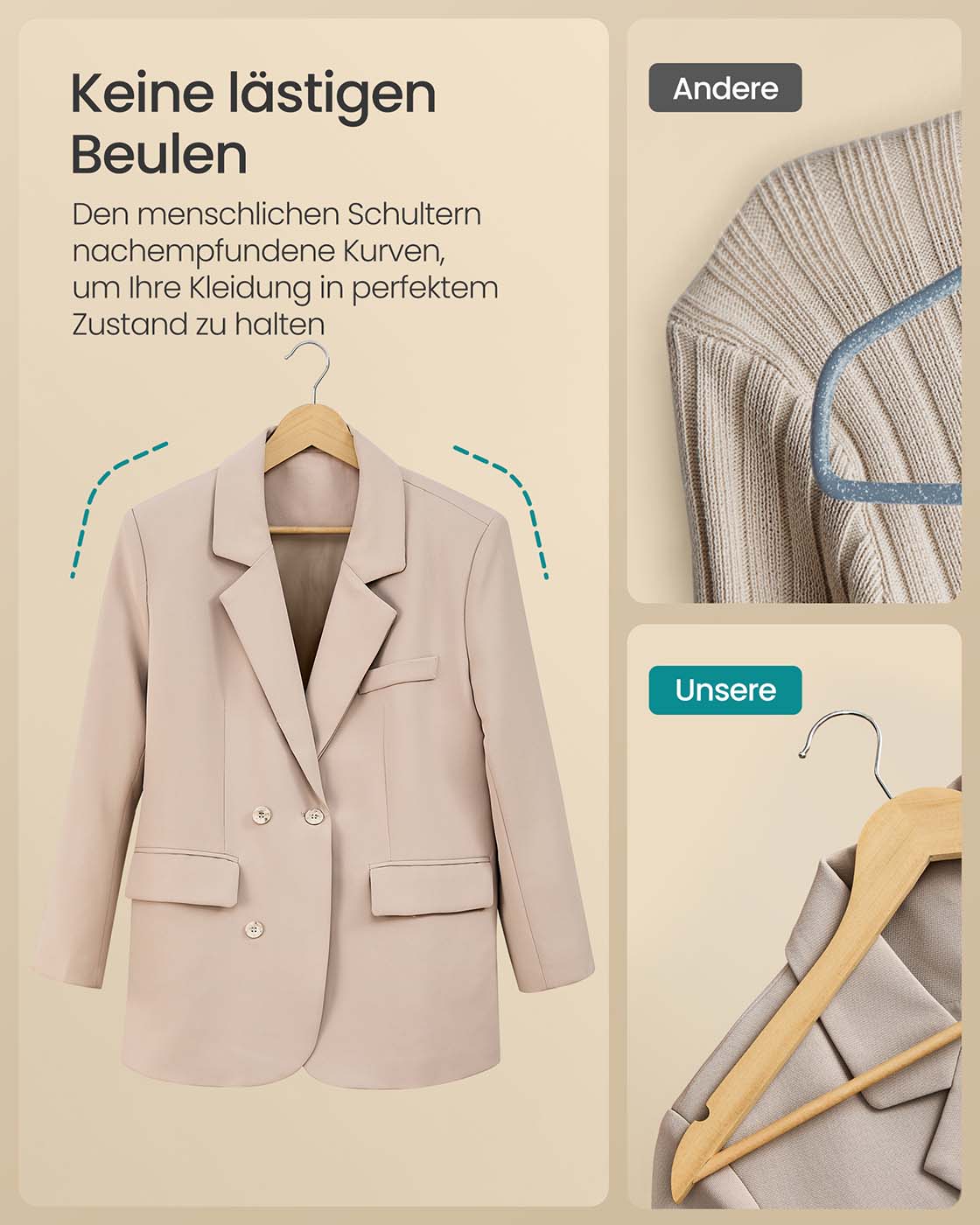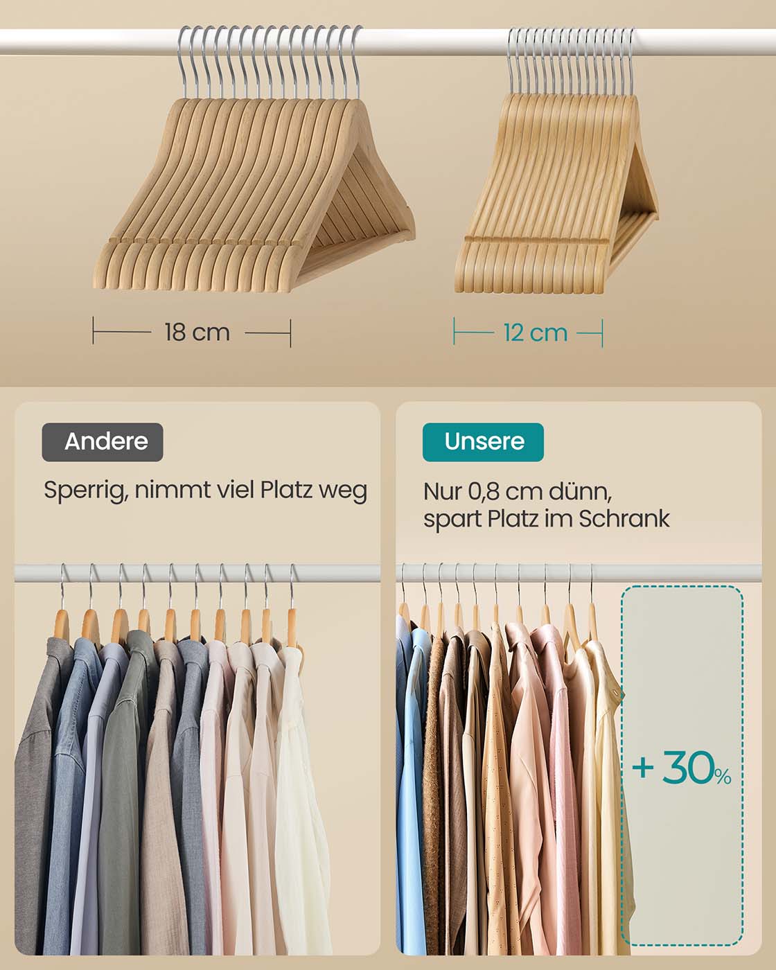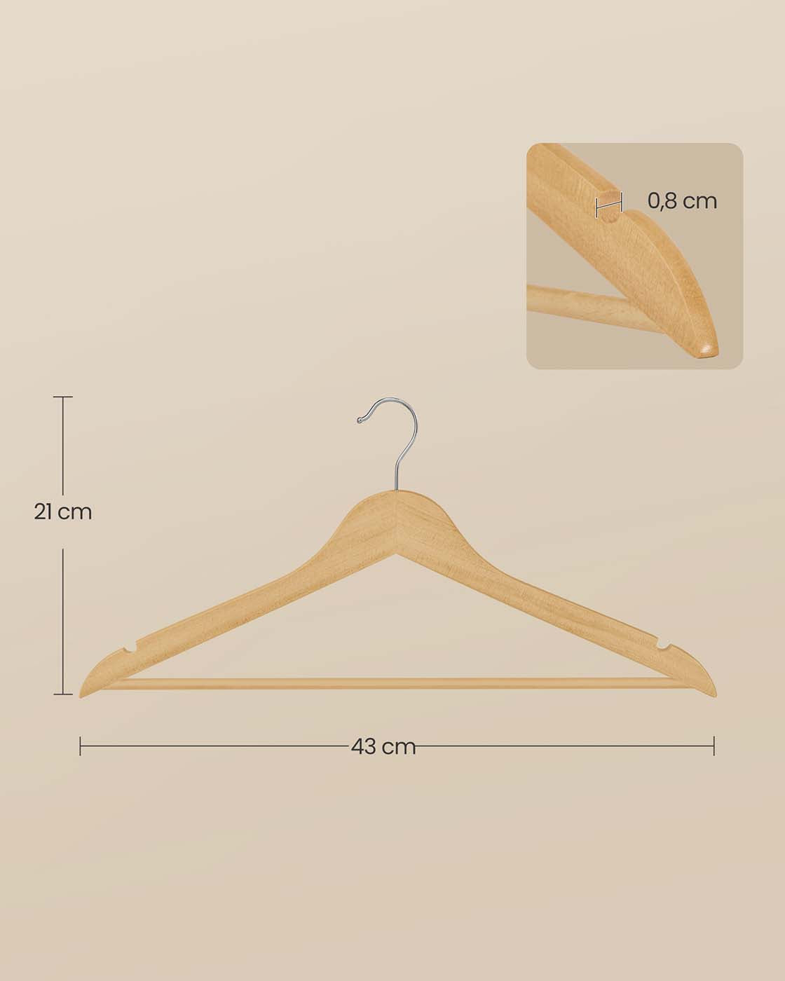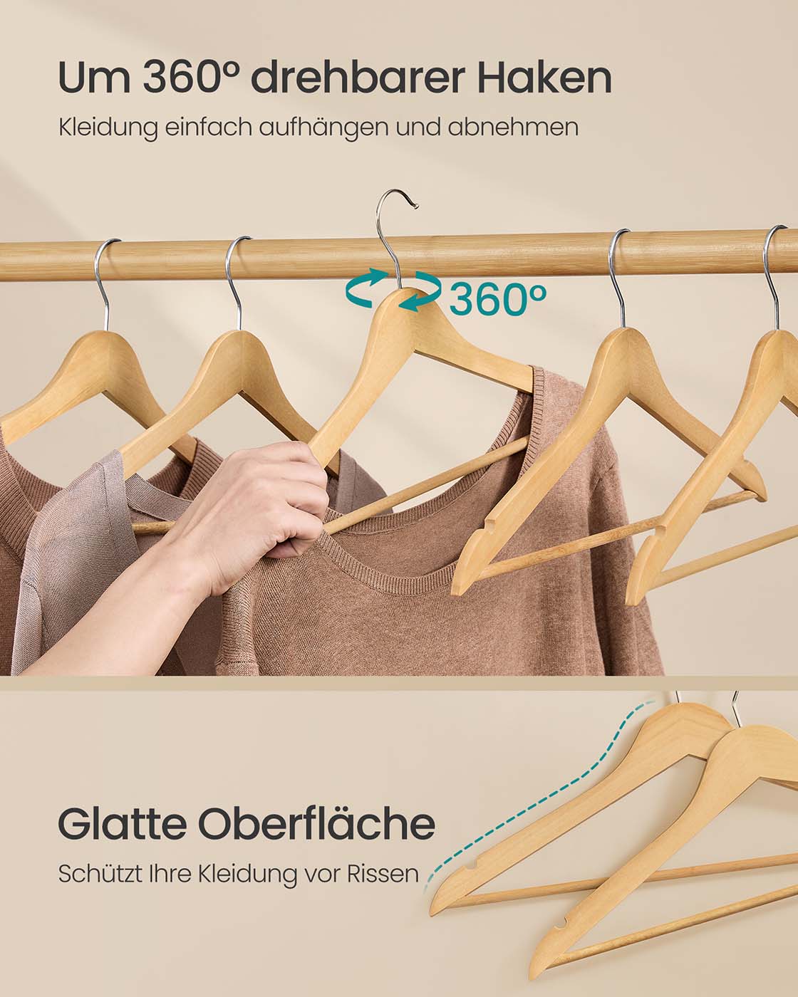 Houten kledinghangers set van 20 met 360° draaibare haken, natuurlijke kleur 43 x 21 cm