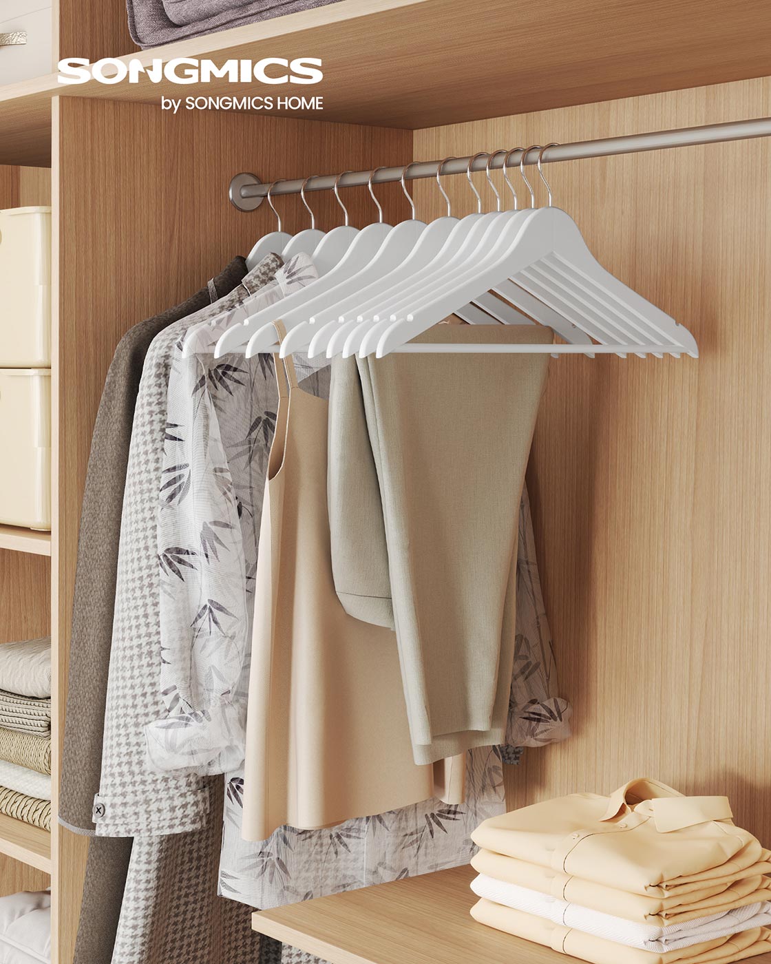 Houten kledinghangers set van 20 met 360° draaibare haken, wolkenwit 43 x 21 cm