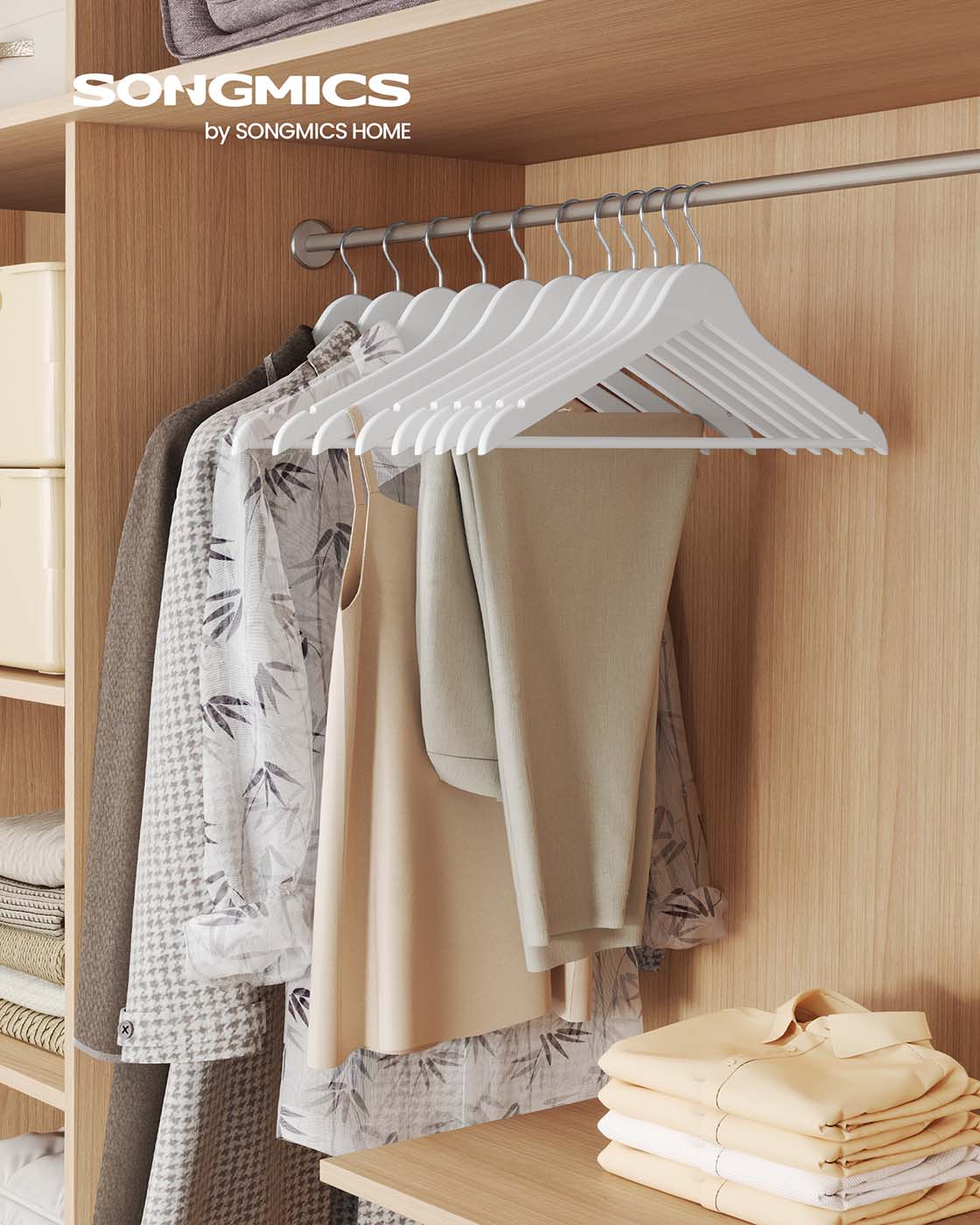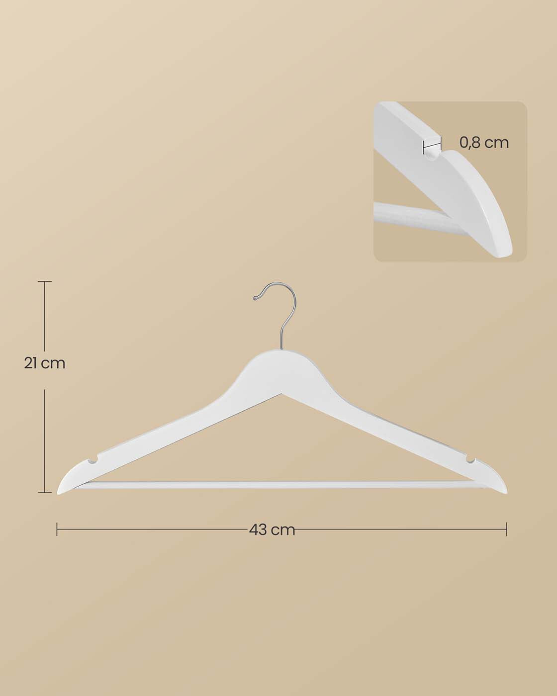 Houten kledinghangers set van 30 met 360° draaibare haken, wolkenwit 43 x 21 cm