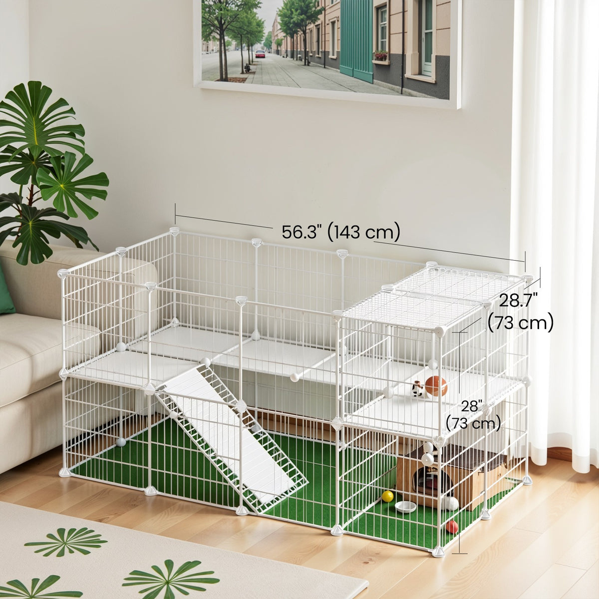 Huisdierkooi met 2 verdiepingen, klein dierenverblijf, doe-het-zelf 143 x 71 x 73 cm