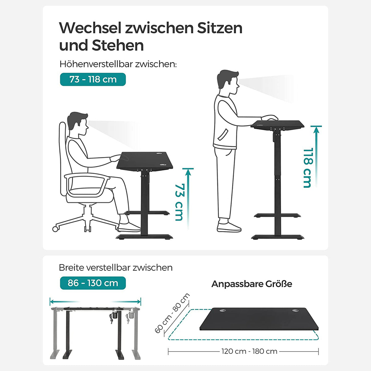 In hoogte verstelbaar bureau met blad van 60 x 120 cm - LSD101B02