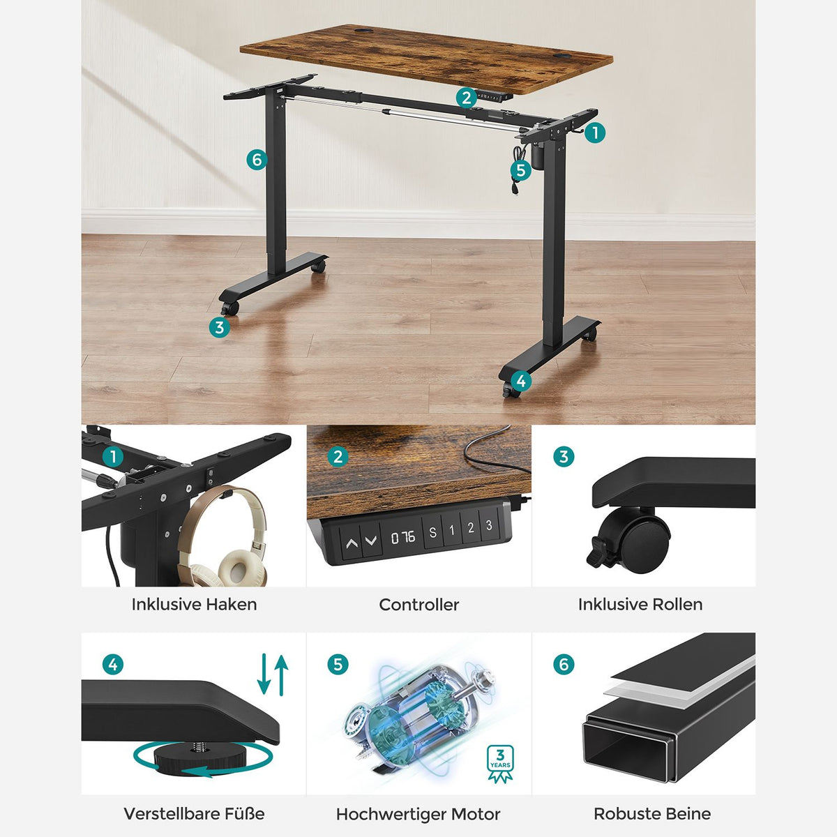 In hoogte verstelbaar bureau met blad van 60 x 120 cm - LSD101X01