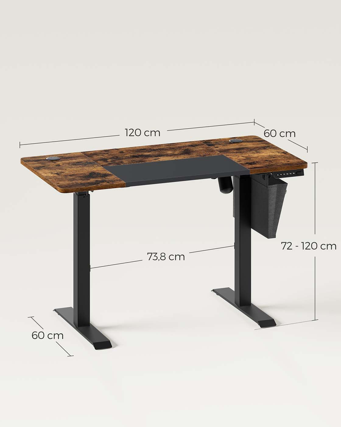 In hoogte verstelbaar bureau vintage bruin-zwart 120 x 60 x 72 cm - B34LSD015X01