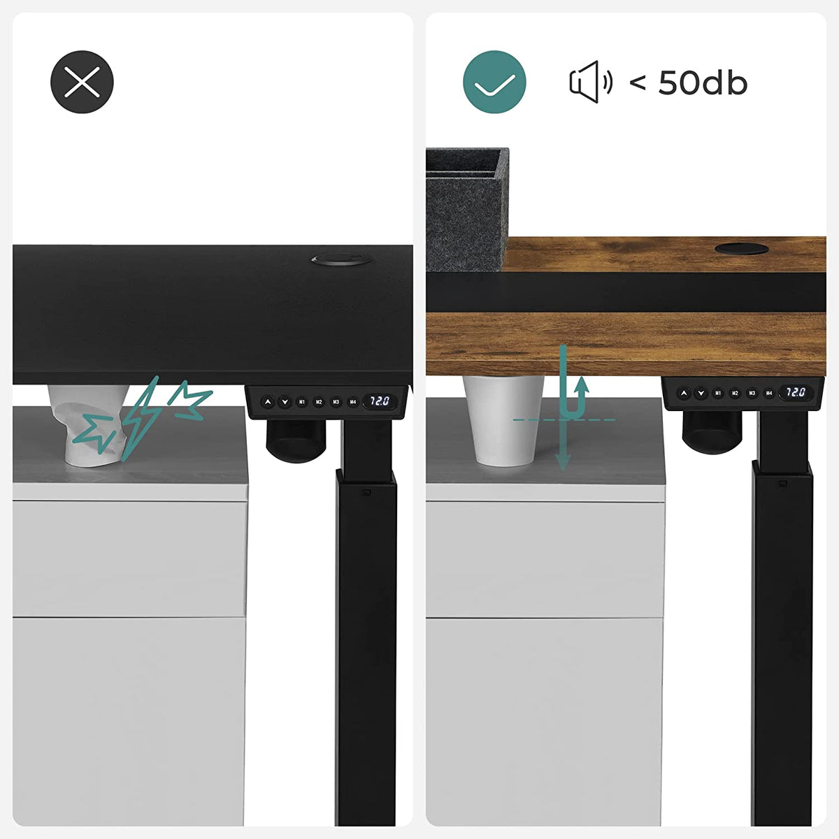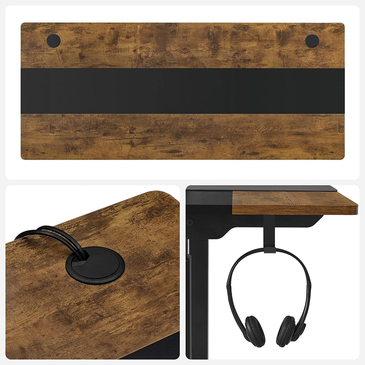 In hoogte verstelbaar bureau vintage bruin-zwart 140 x 60 x 72 cm