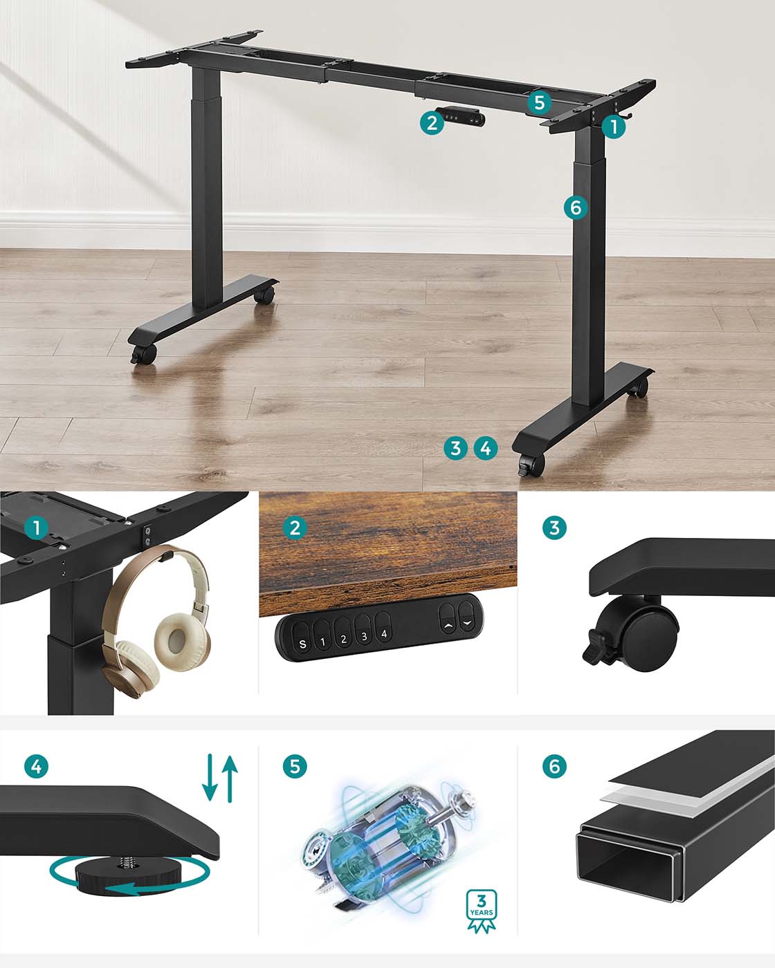 In hoogte verstelbaar elektrisch bureau zwart 115 cm