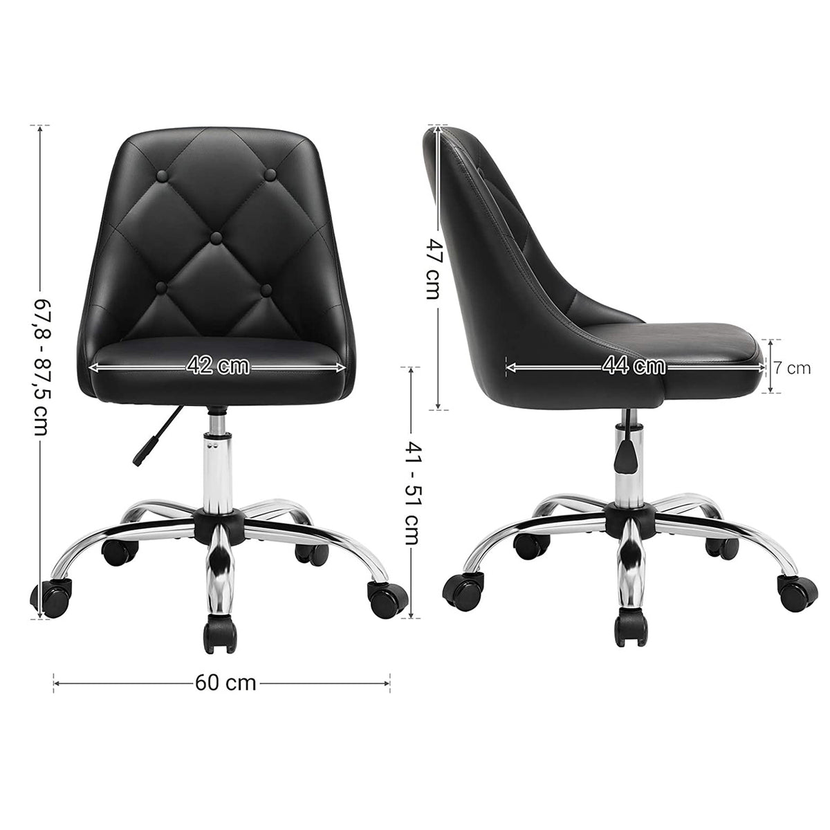 In hoogte verstelbare computerstoel zwart 42 x 44 cm