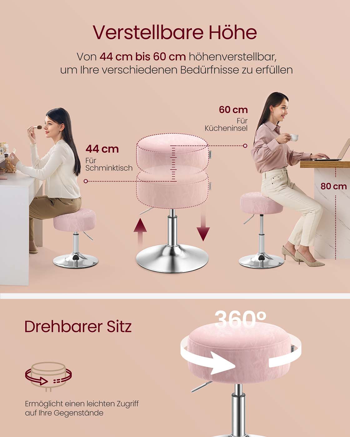 In hoogte verstelbare en 360° draaibare make-upkruk pastelroze 38 cm