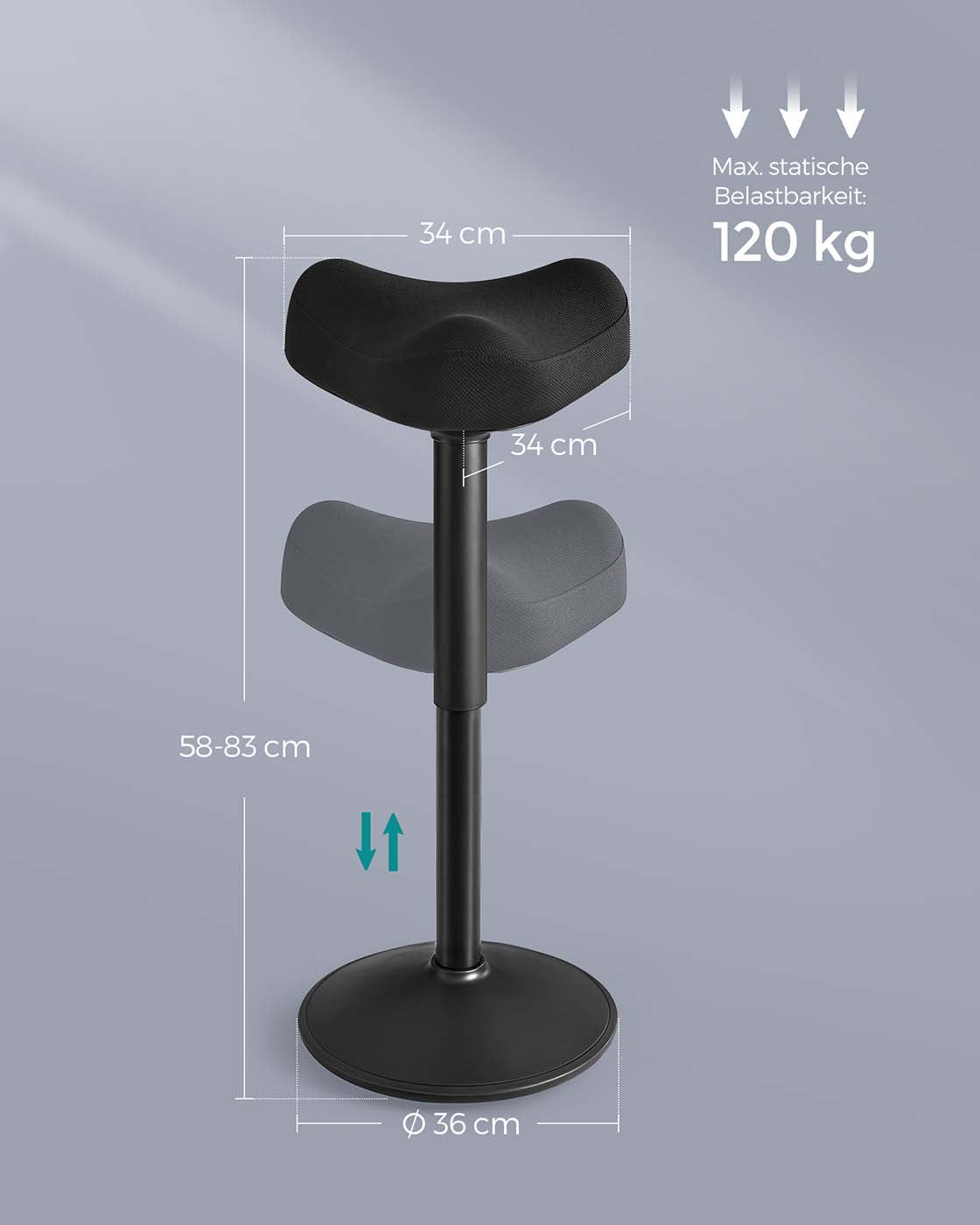 In hoogte verstelbare en moderne zwarte staande kruk 83 cm