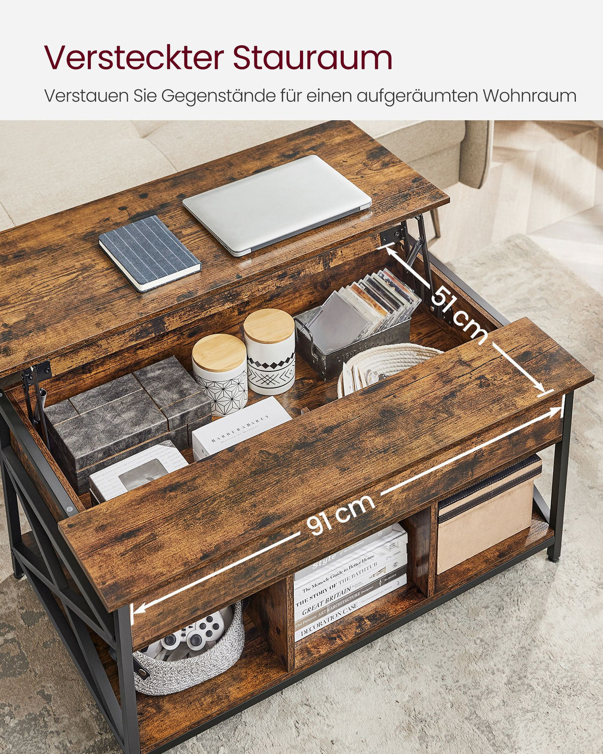 In hoogte verstelbare salontafel 60 x 100 x (48-62) cm - B34LCT205B01