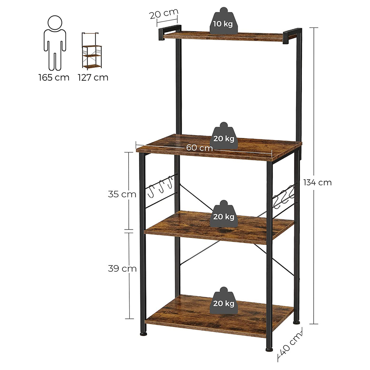 Industrieel design keukenplank met haken 60 x 40 x 127 cm