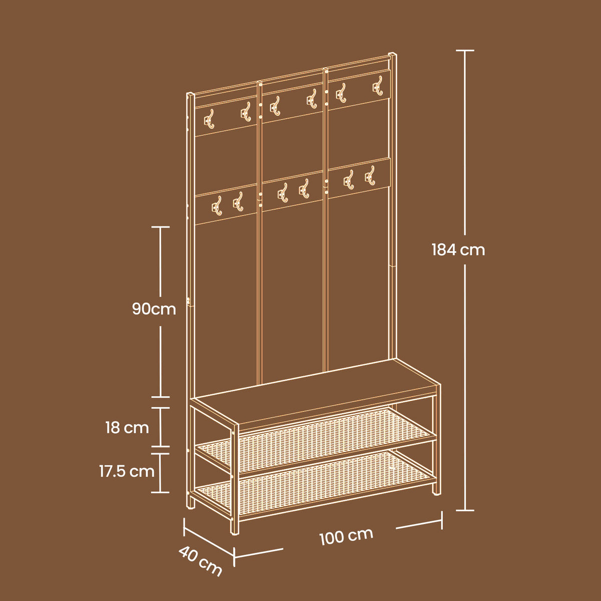 Industriële stijl kledingkast en schoenenbank 100 x 40 x 184 cm - HSRB3586BX