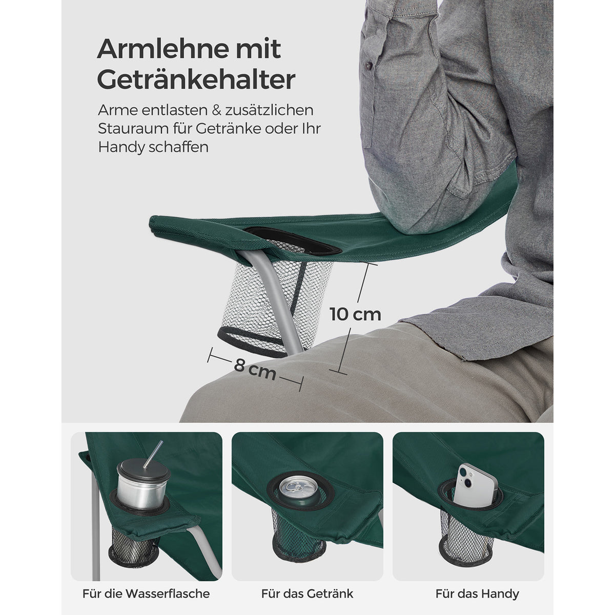 Kampeerstoelset van 2 met bekerhouder donkergroen 54 x 86 x 97 cm