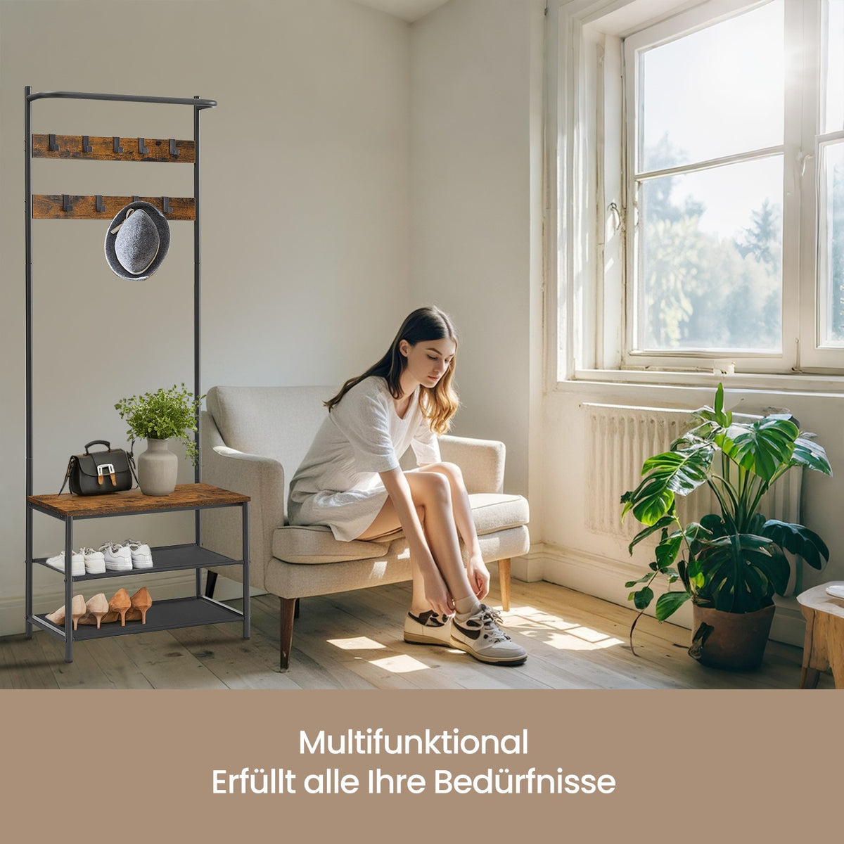 Kapstok, kapstok met schoenenbank, kledingrek 2 x 64 x 180 cm - HSRB35411B01