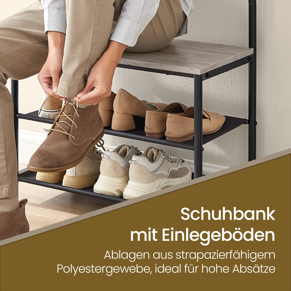 Kapstok, kapstok met schoenenbank, kledingrek 2 x 64 x 180 cm - HSRB35411B02