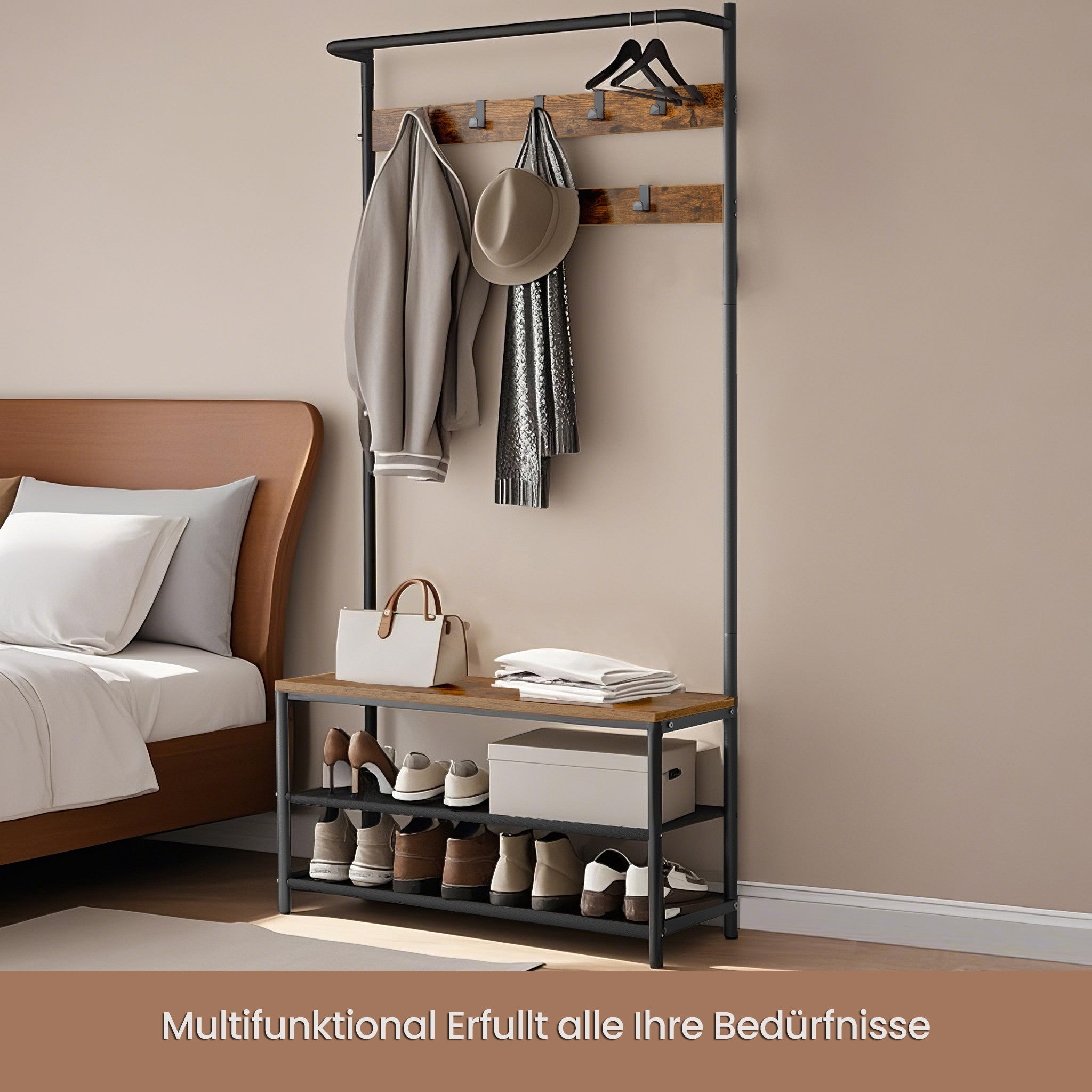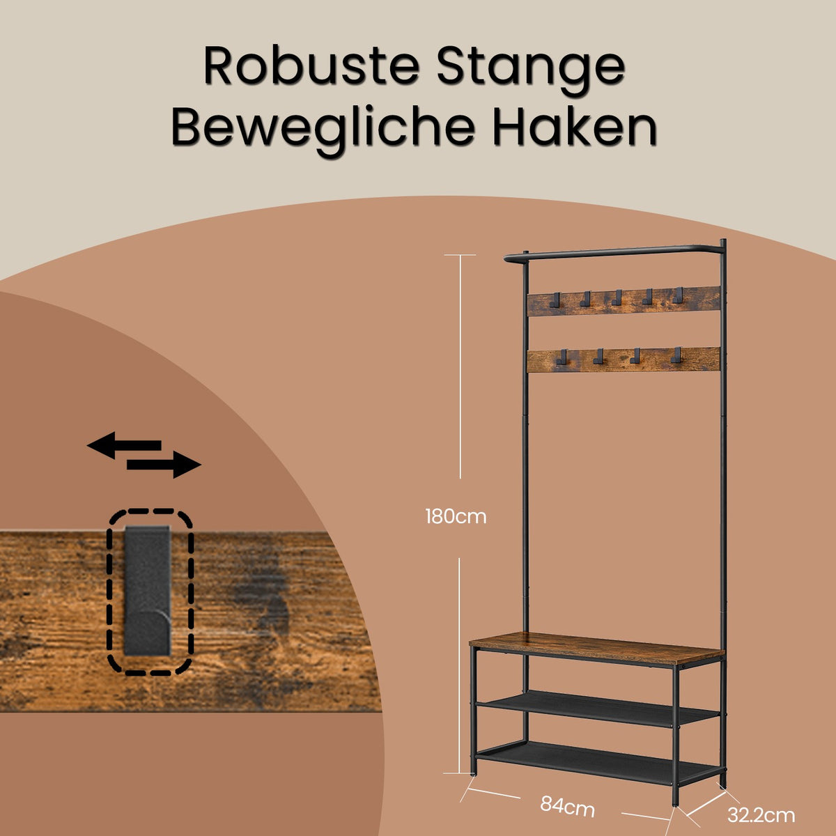 Kapstok, kapstok met schoenenbank, kledingrek 2 x 84 x 180 cm