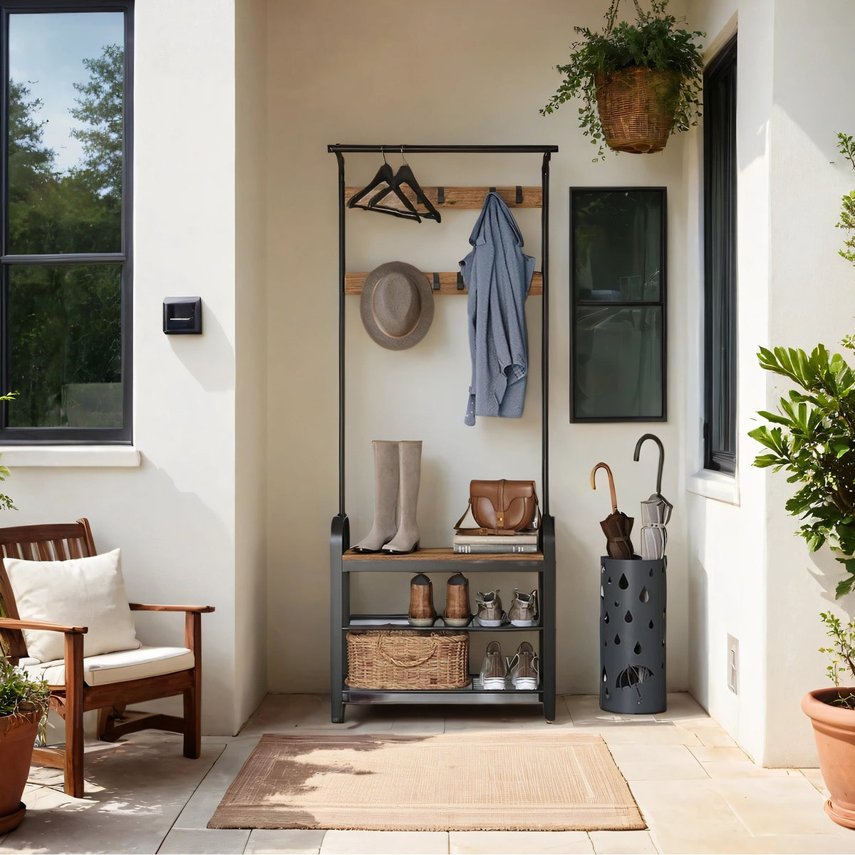 Kapstok, kledingkast, met schoenenbank 7 x 72 x 183 cm - HSRB35040B41