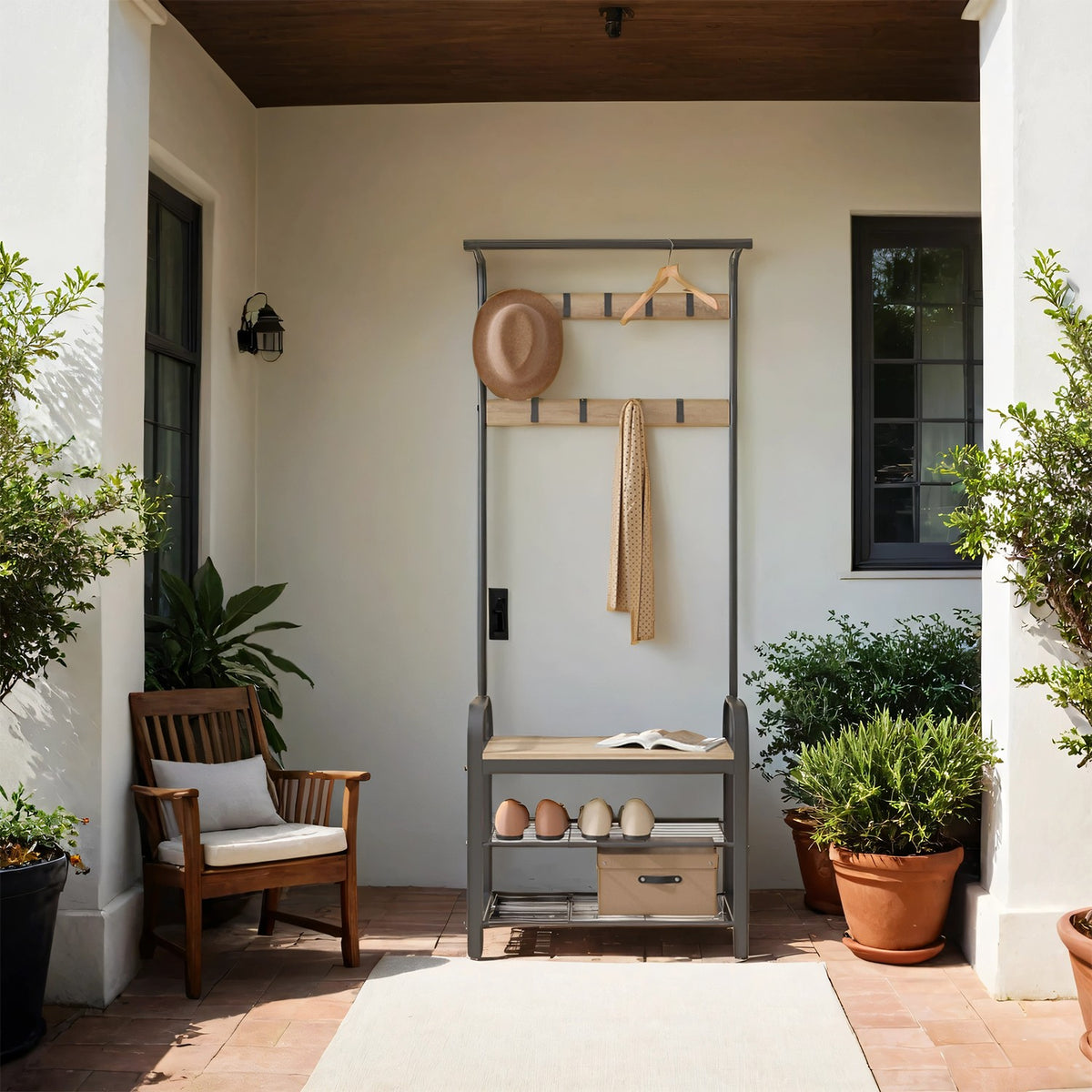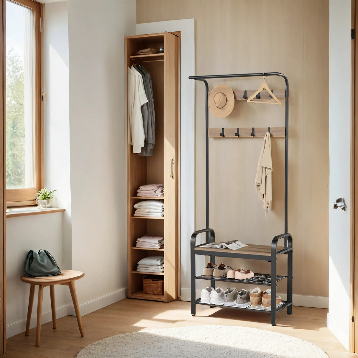 Kapstok, kledingkast, met schoenenbank 7 x 72 x 183 cm - HSRB35040K02