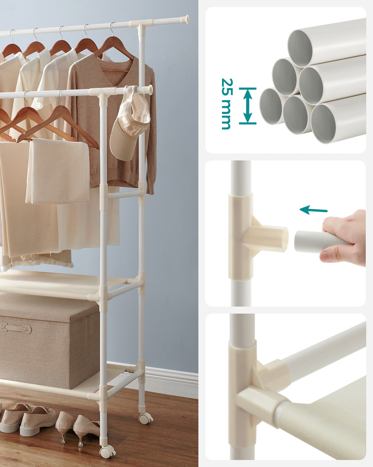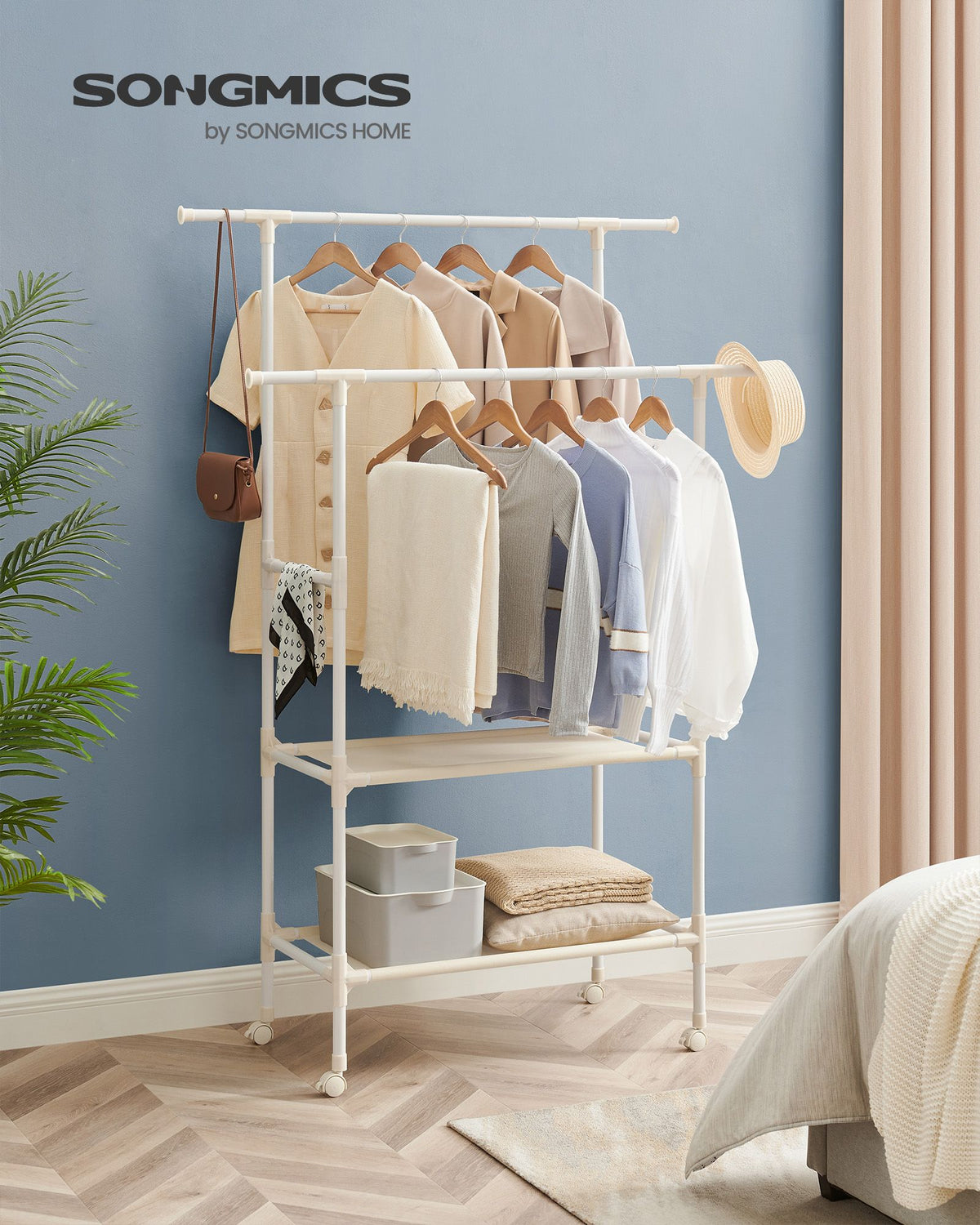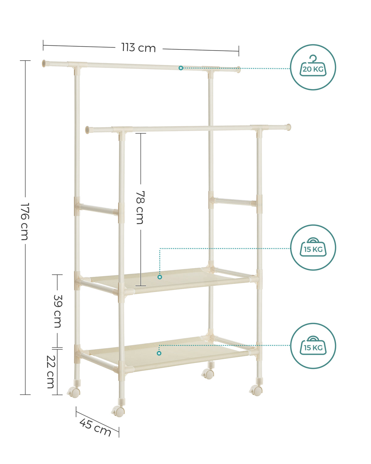 Kapstok met 2 kledingstangen metaal wit 113 x 45 x 176 cm