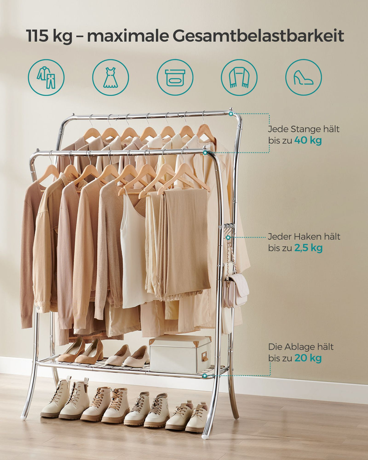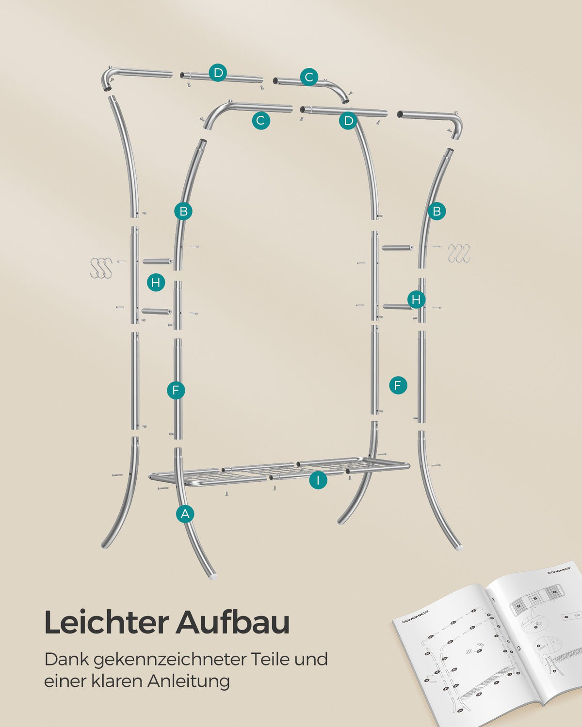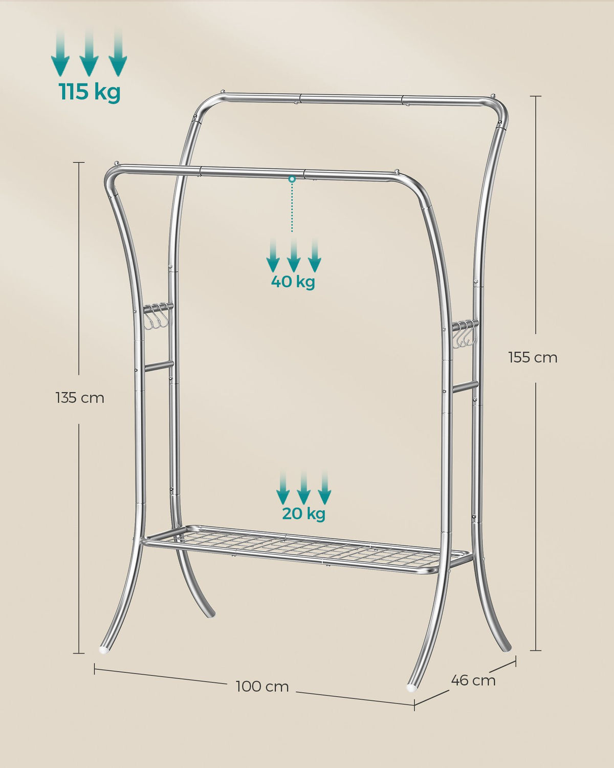 Kapstok met 6 haken en planken zilver 46 x 100 x 155 cm - B34HSR109E01