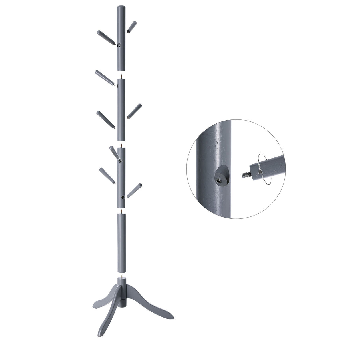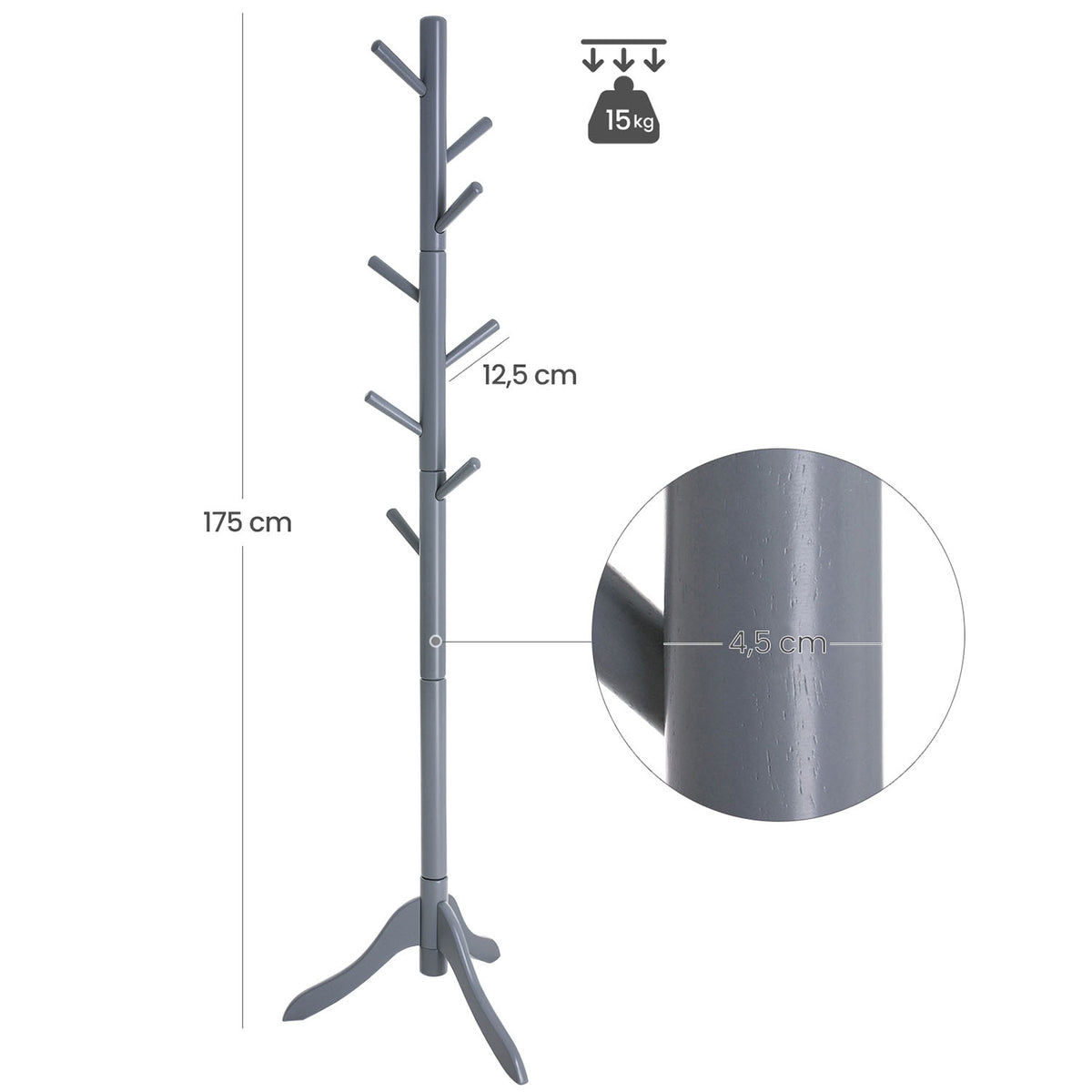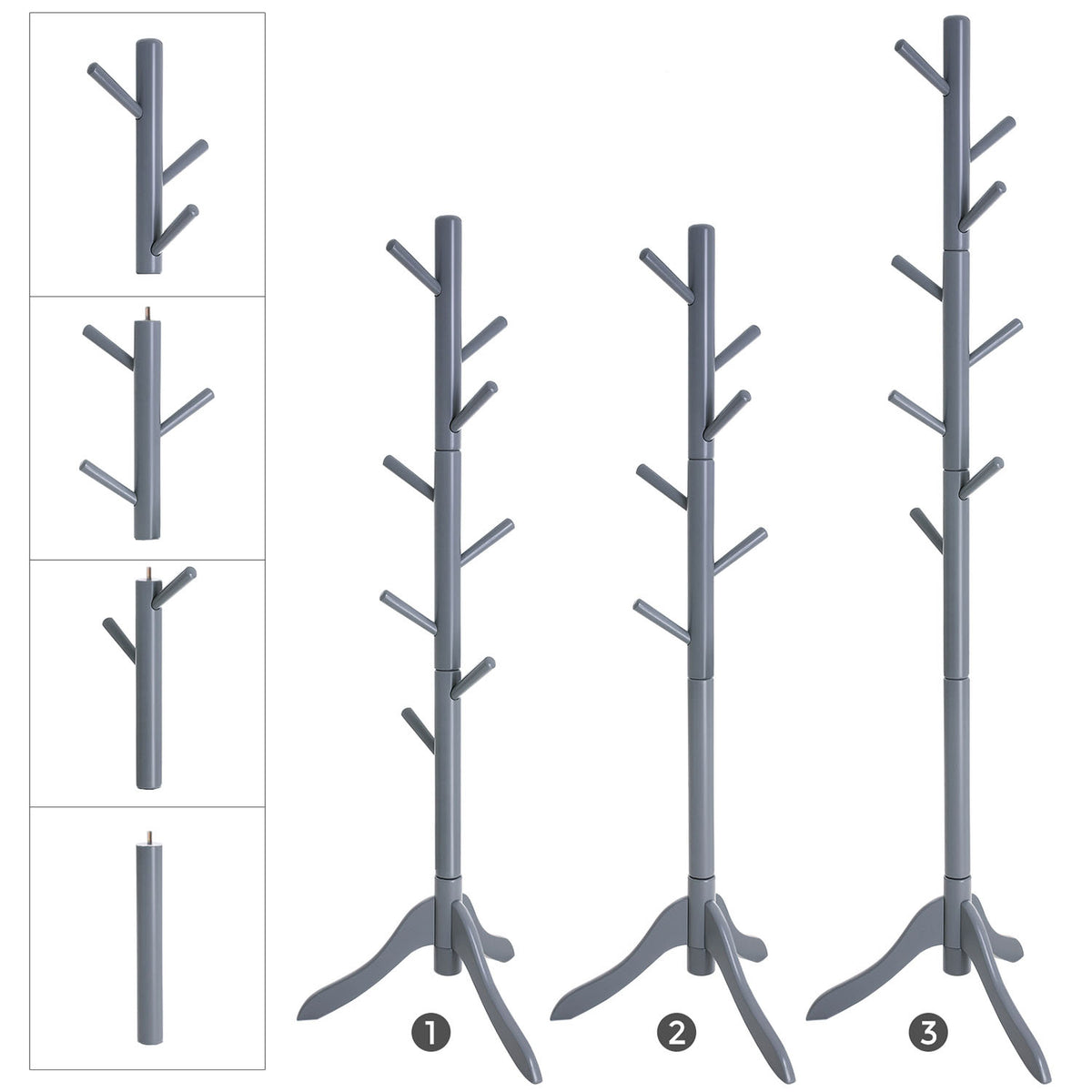 Kapstok met 8 haken en 3 verstelbare hoogtes grijs 3 x 177 cm