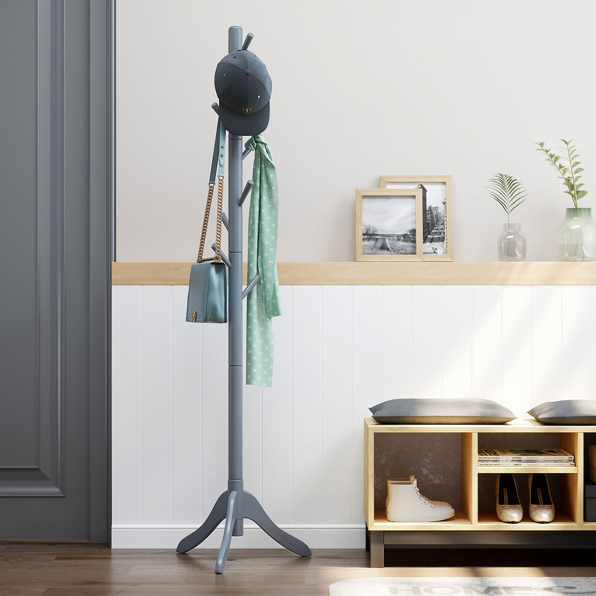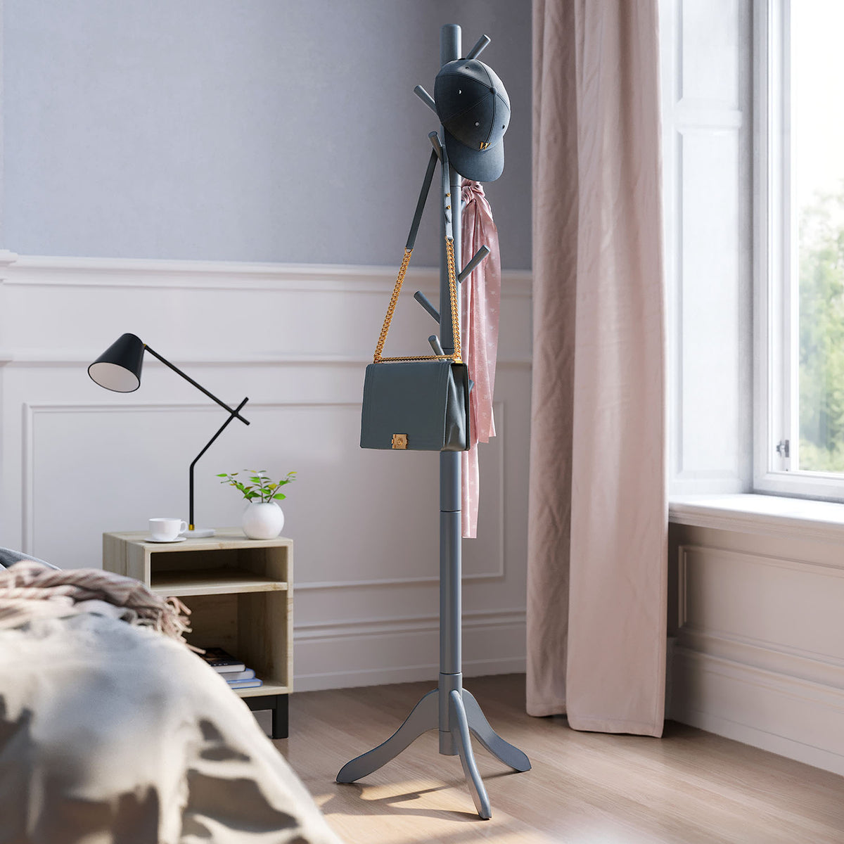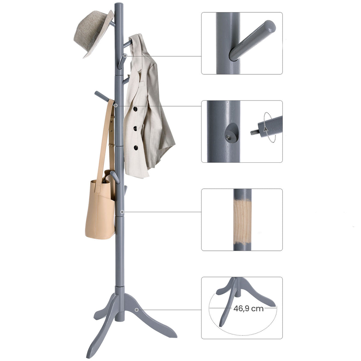 Kapstok met 8 haken en 3 verstelbare hoogtes grijs 3 x 177 cm