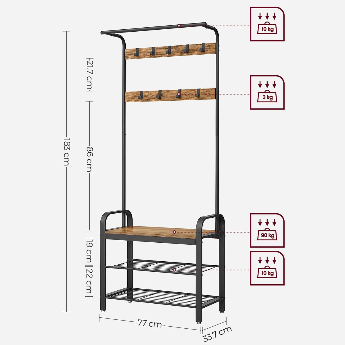 Kapstok met bankje 33,7 x 72 x 183 cm