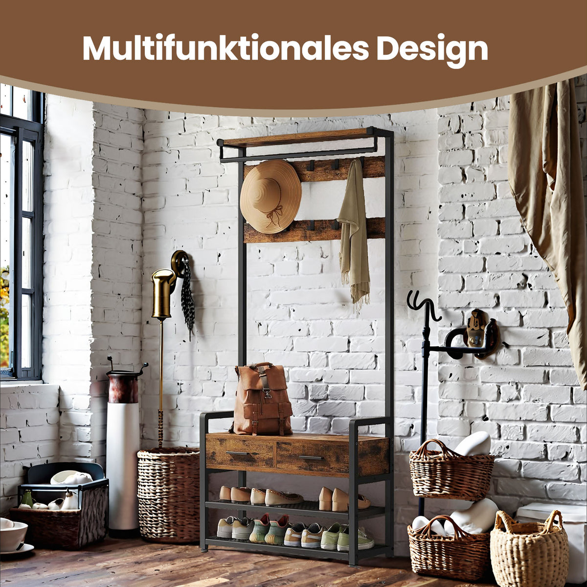 Kapstok met schoenenbank en 10 haken 6 cm - HSRB35429B01