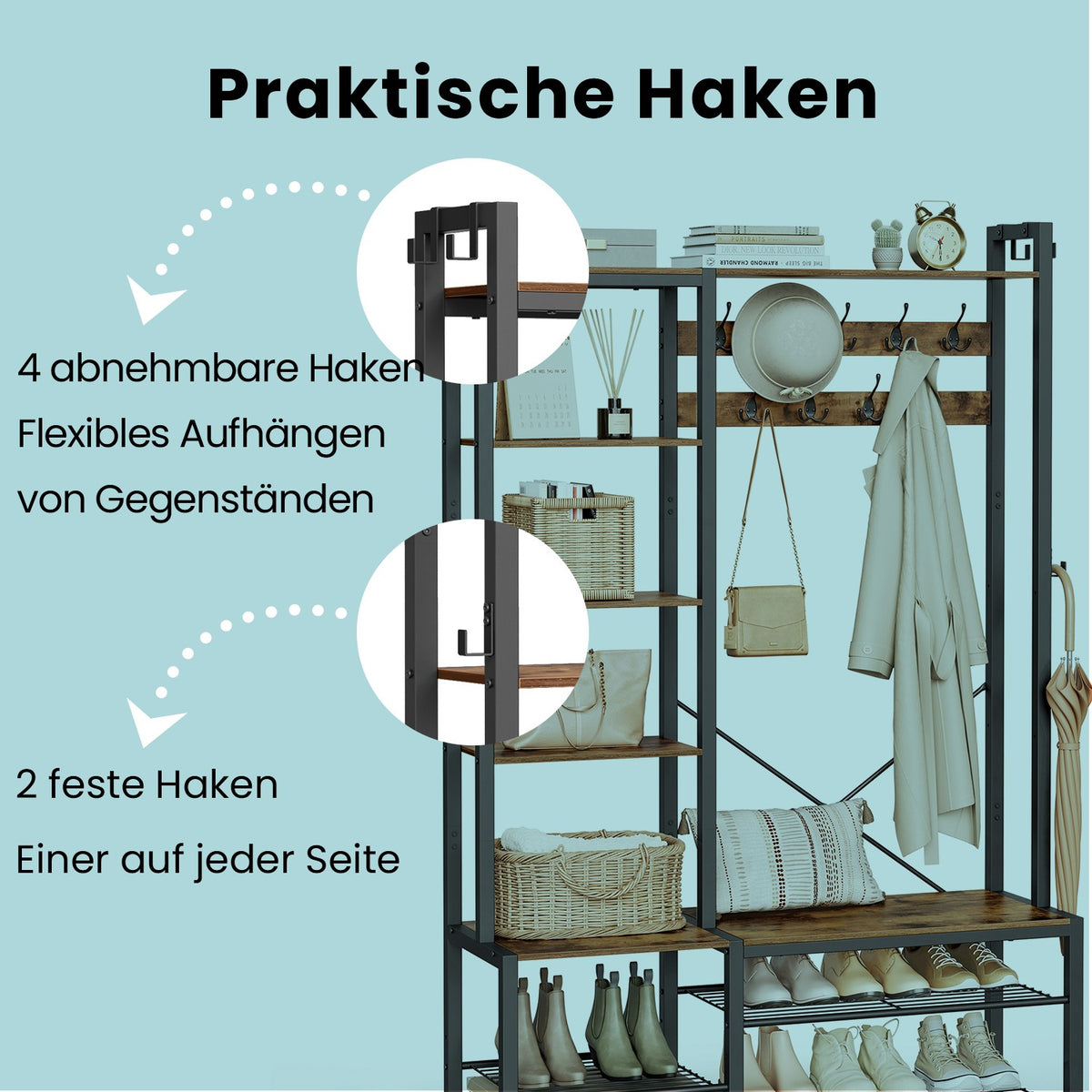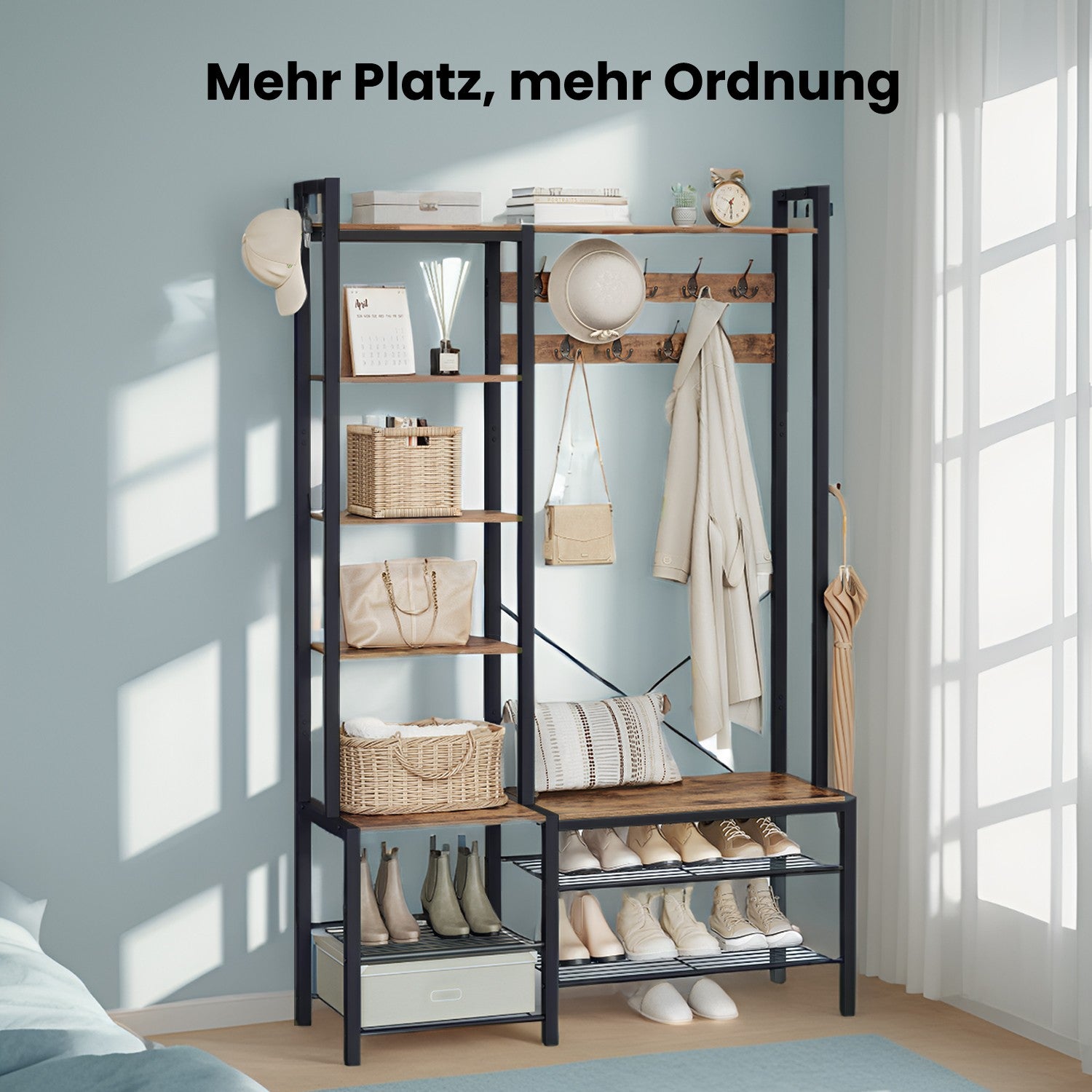 Kapstok met schoenenbank, kledingkast, 5 planken van spaanplaat 40 x 120 x 190 cm