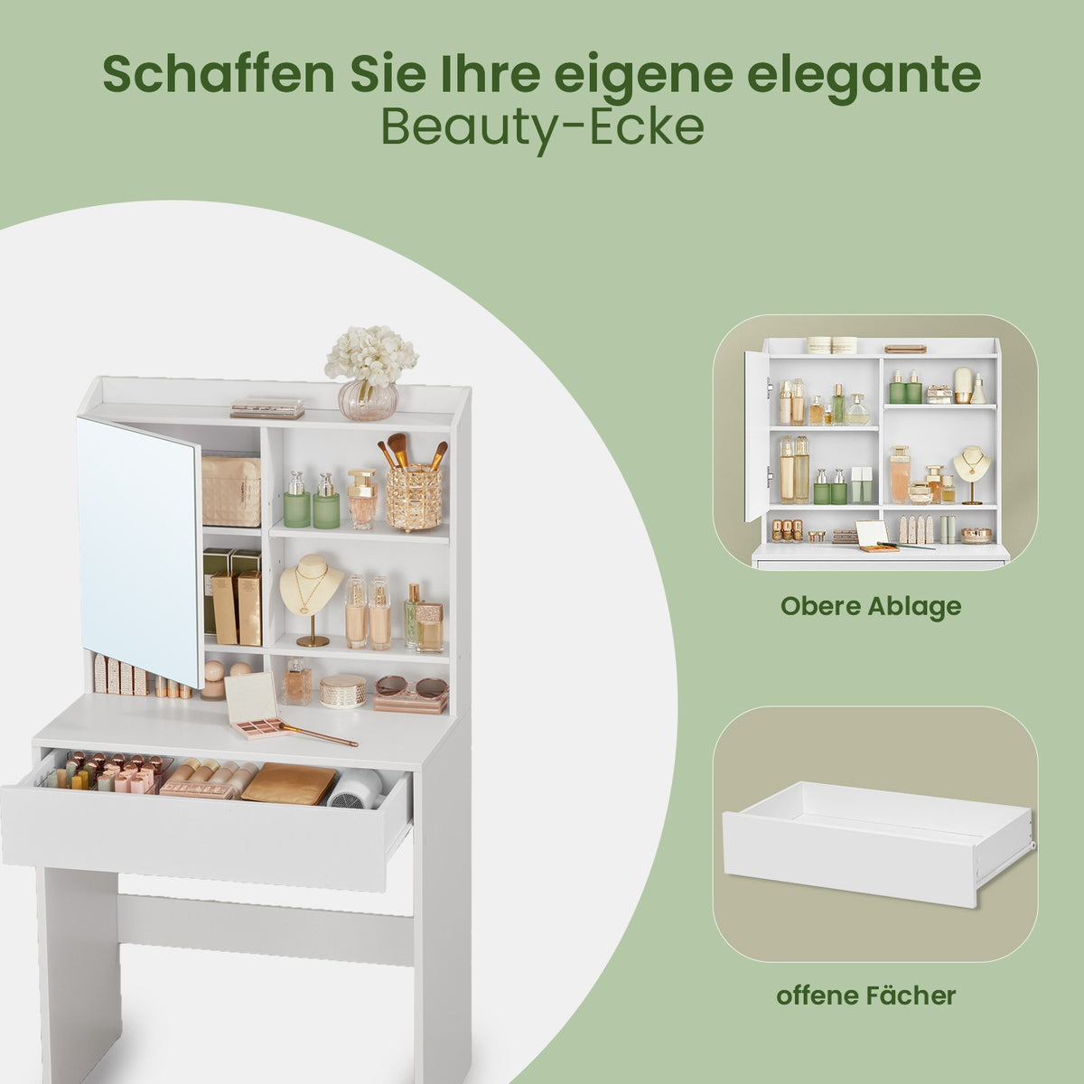 Kaptafel, kaptafel met spiegel en één lade, cosmeticatafel 40 x 70 x 135 cm