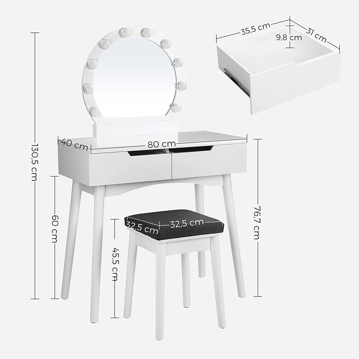 Kaptafel landelijke stijl wit 80 x 40 x 130,5 cm