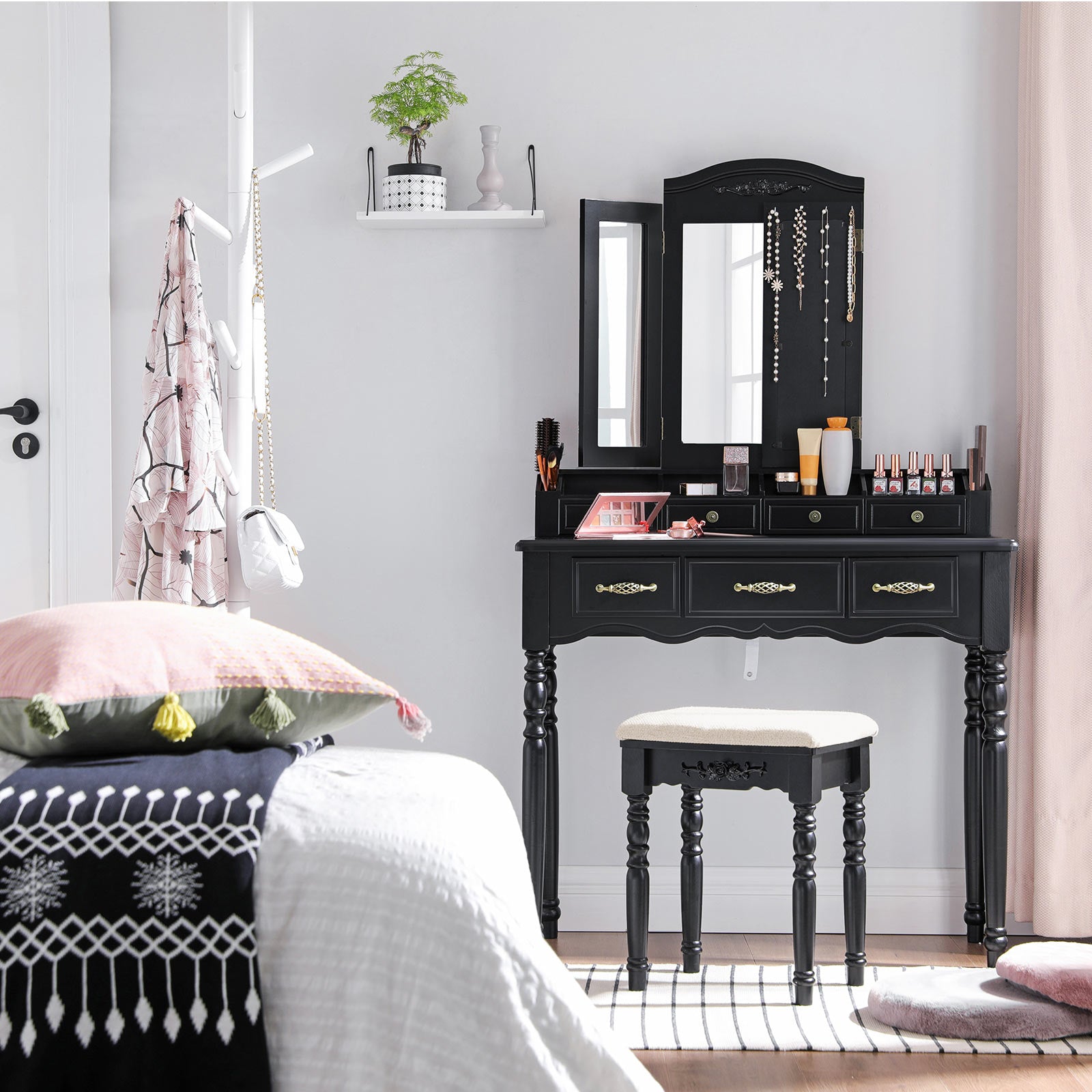 Kaptafel met 7 lades zwart 40,5 x 30,5 x 46 cm