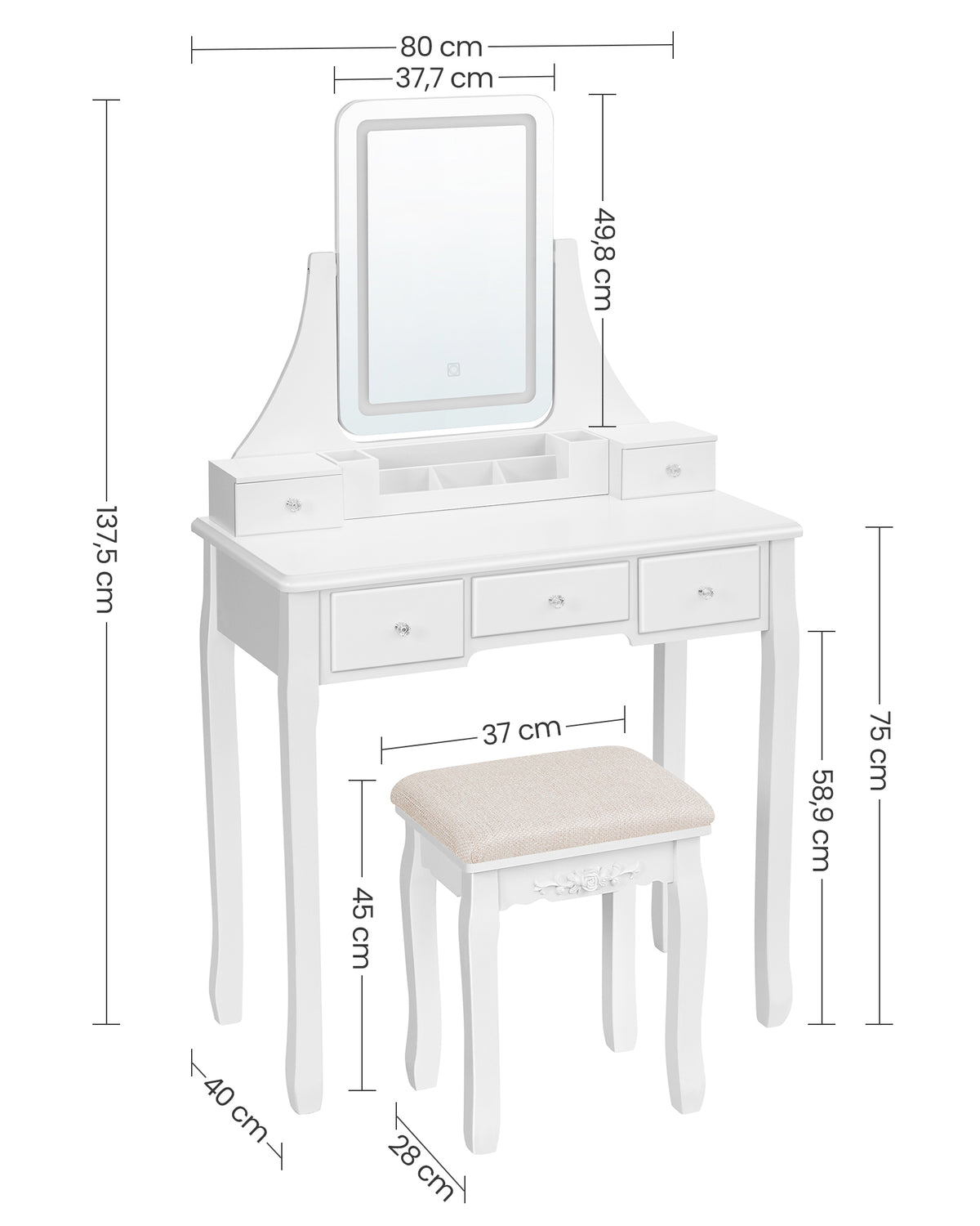 Kaptafel met LED-verlichting en spiegel wit 80 x 40 x 137,5 cm