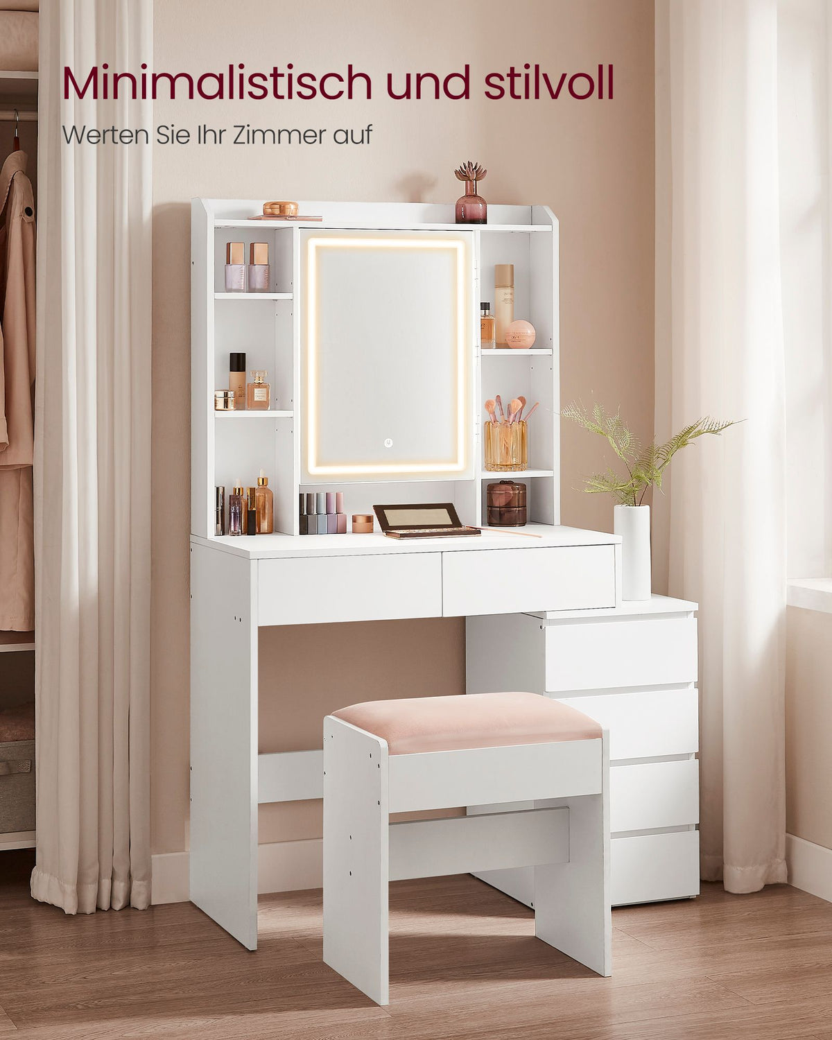 Kaptafel met LED-verlichting moderne wolk wit 5 x 145 cm - RDT125W01