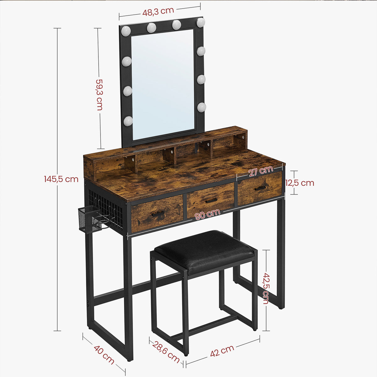 Kaptafel met ledlampen en kruk 90 x 40 x 145,5 cm