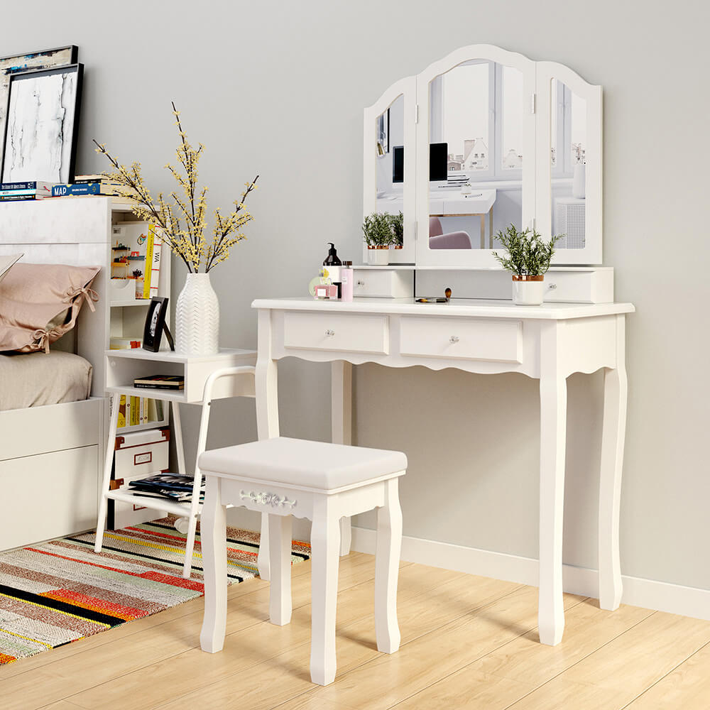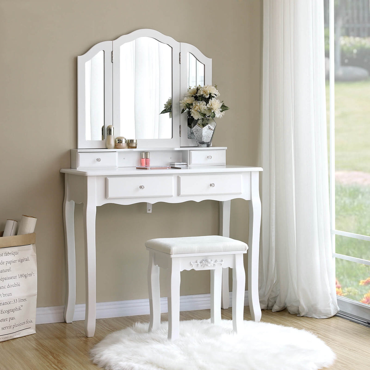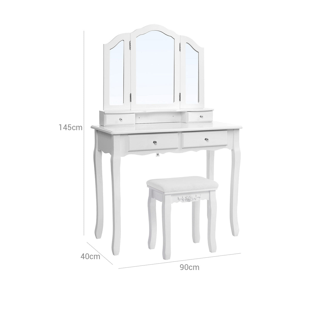 Kaptafel met opklapbare spiegel en kruk 90 x 145 x 40 cm