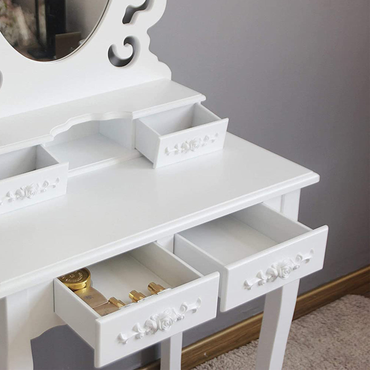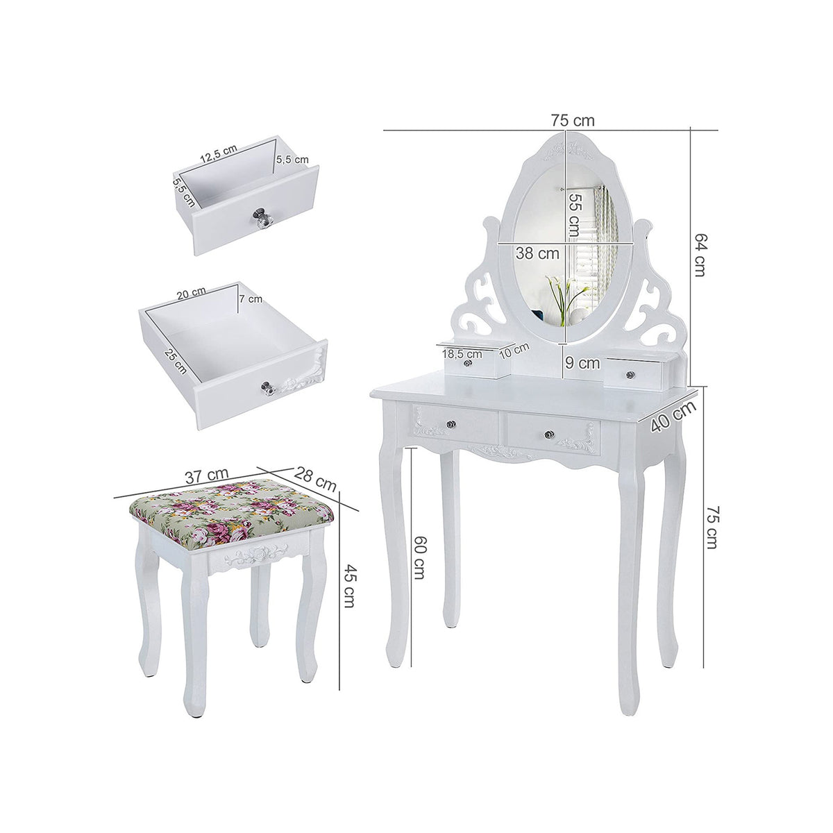 Kaptafel met spiegel en kruk wit 75 x 139 x 40 cm