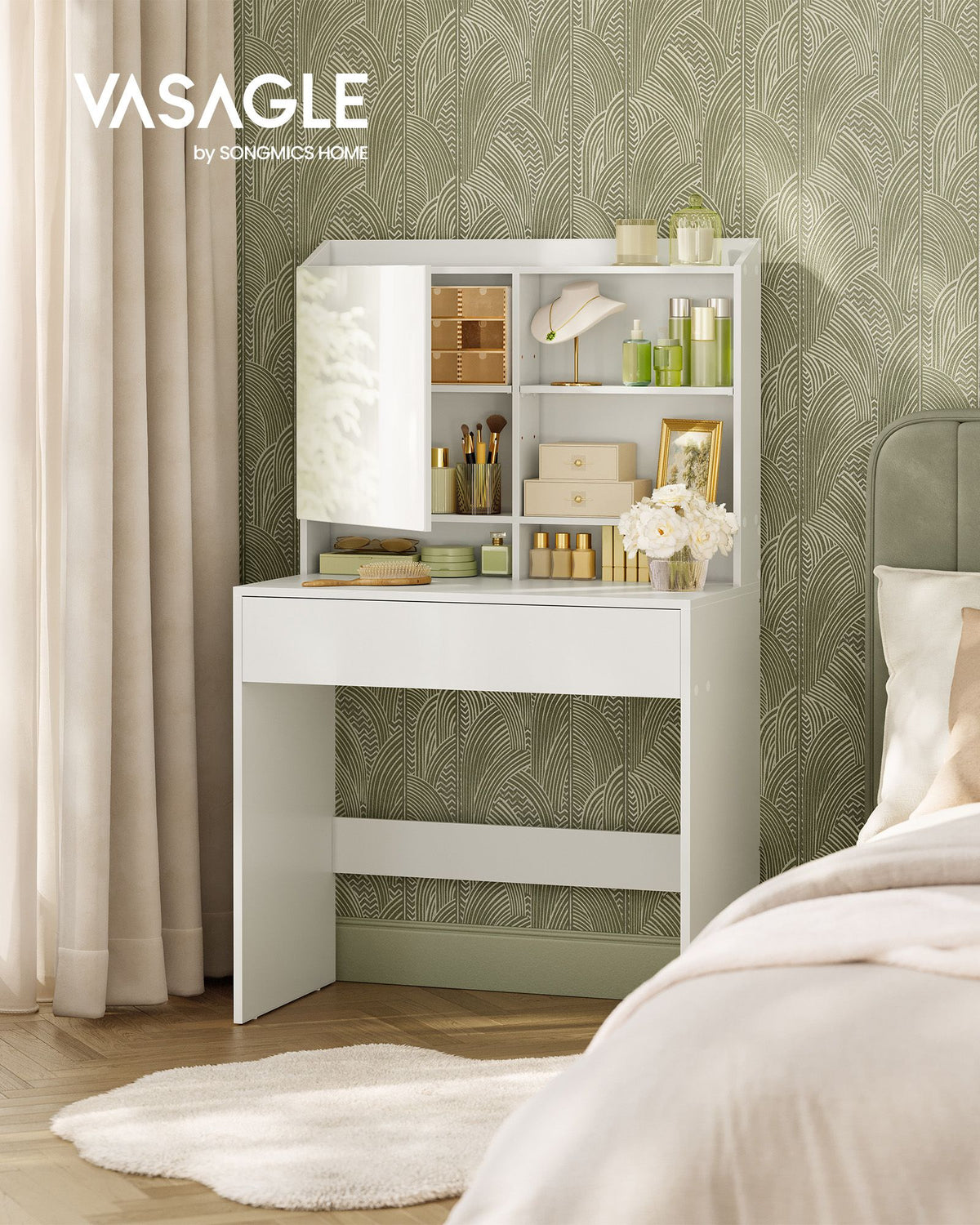 Kaptafel met spiegel wit 70 x 40 x 136 cm