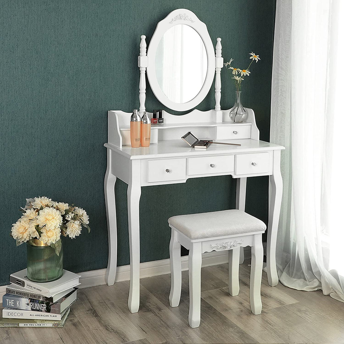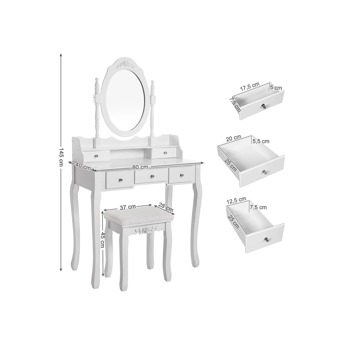 Kaptafelset met 5 lades wit 80 x 145 x 40 cm