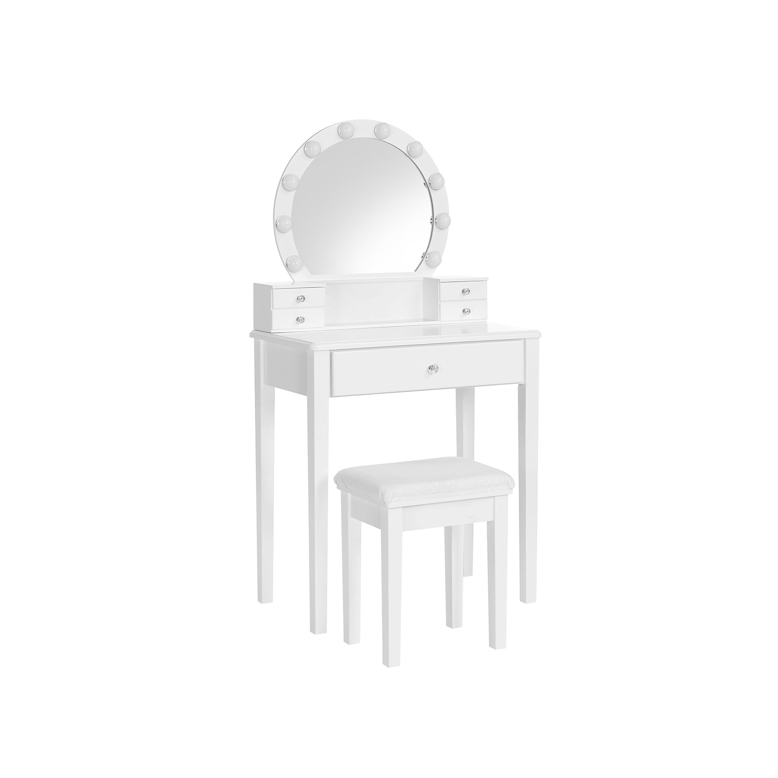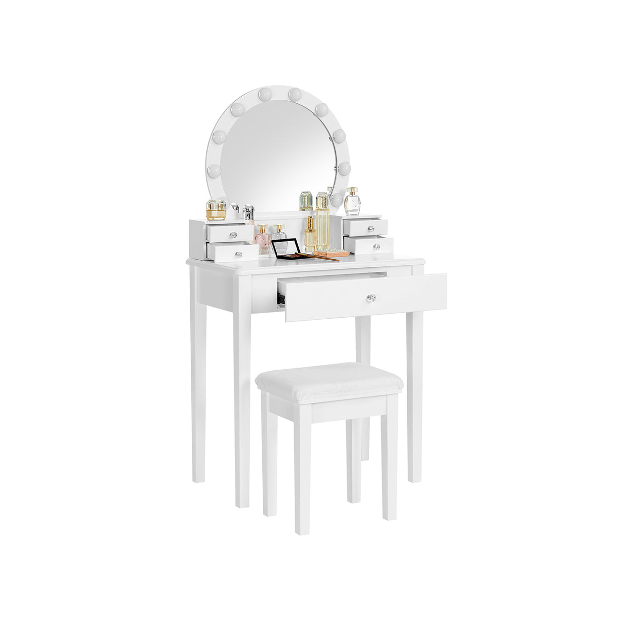 Kaptafelset met spiegel en gloeilampen wit 70 x 40 x 134 cm