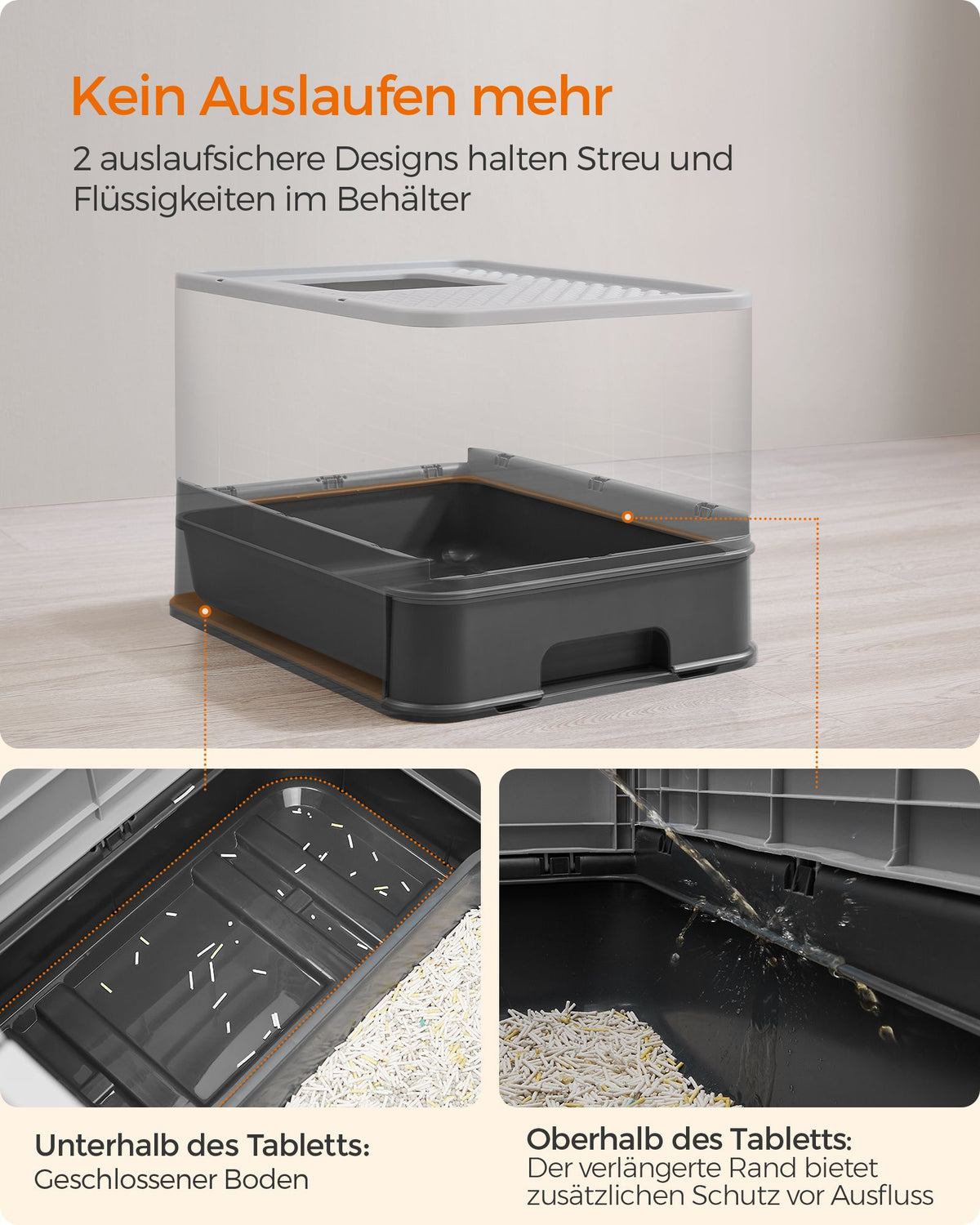 Kattenbak met deksel en schepje ruim antracietgrijs-duifgrijs 8 cm