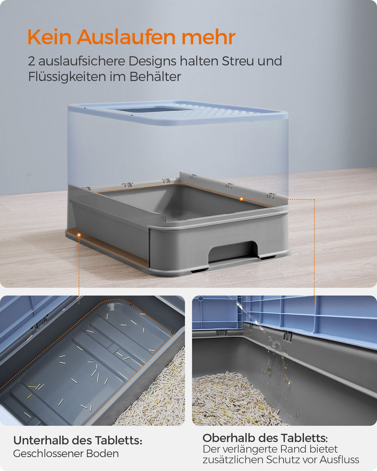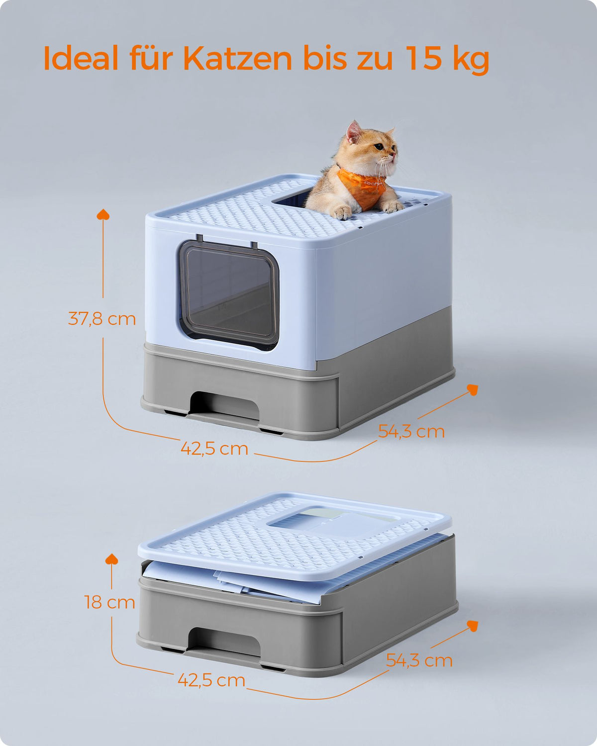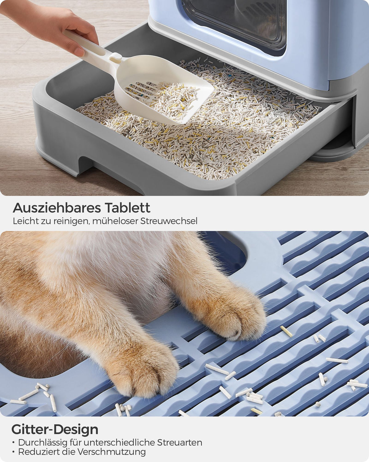 Kattenbak met deksel en schepje ruim lichtblauw-duifgrijs 8 cm