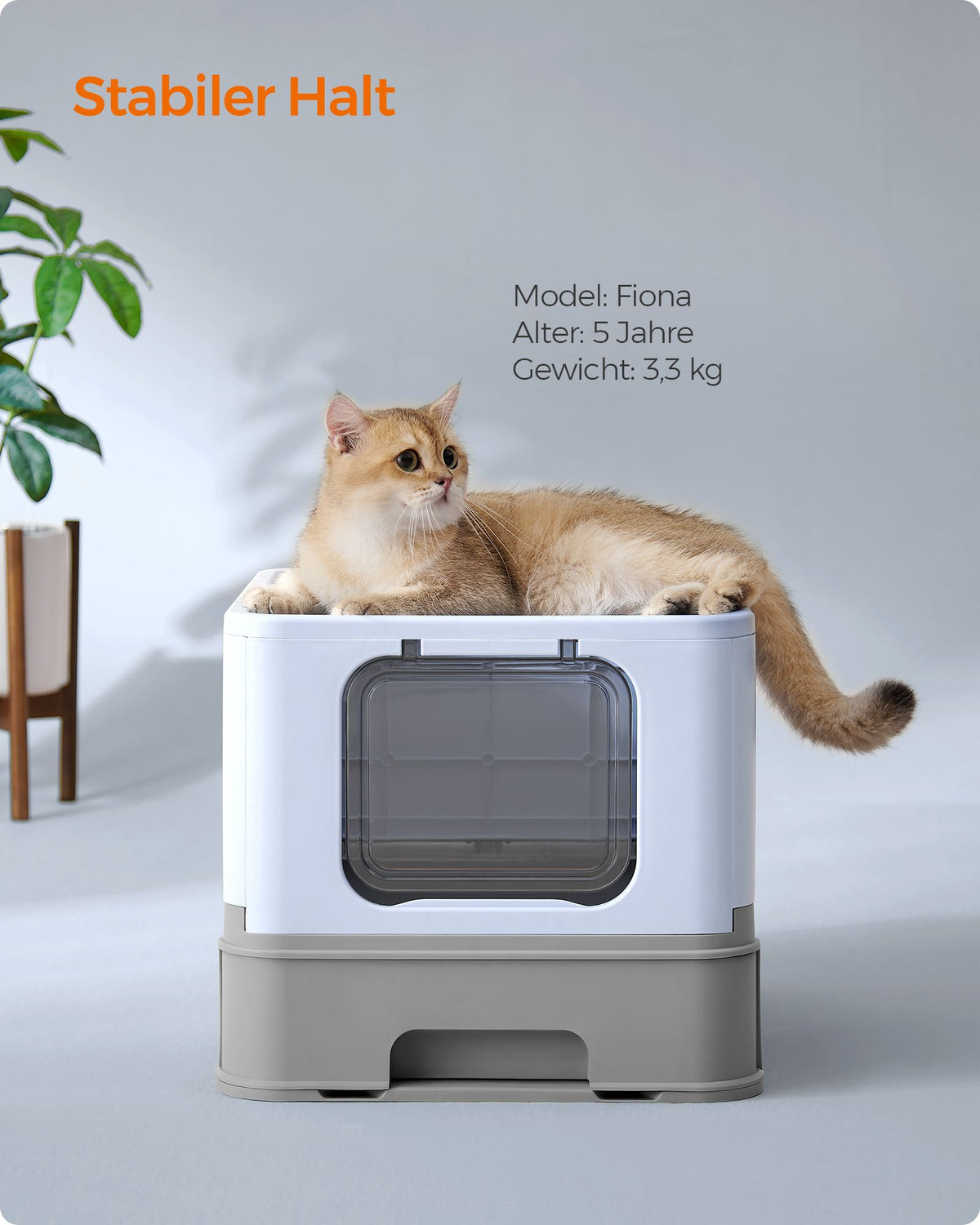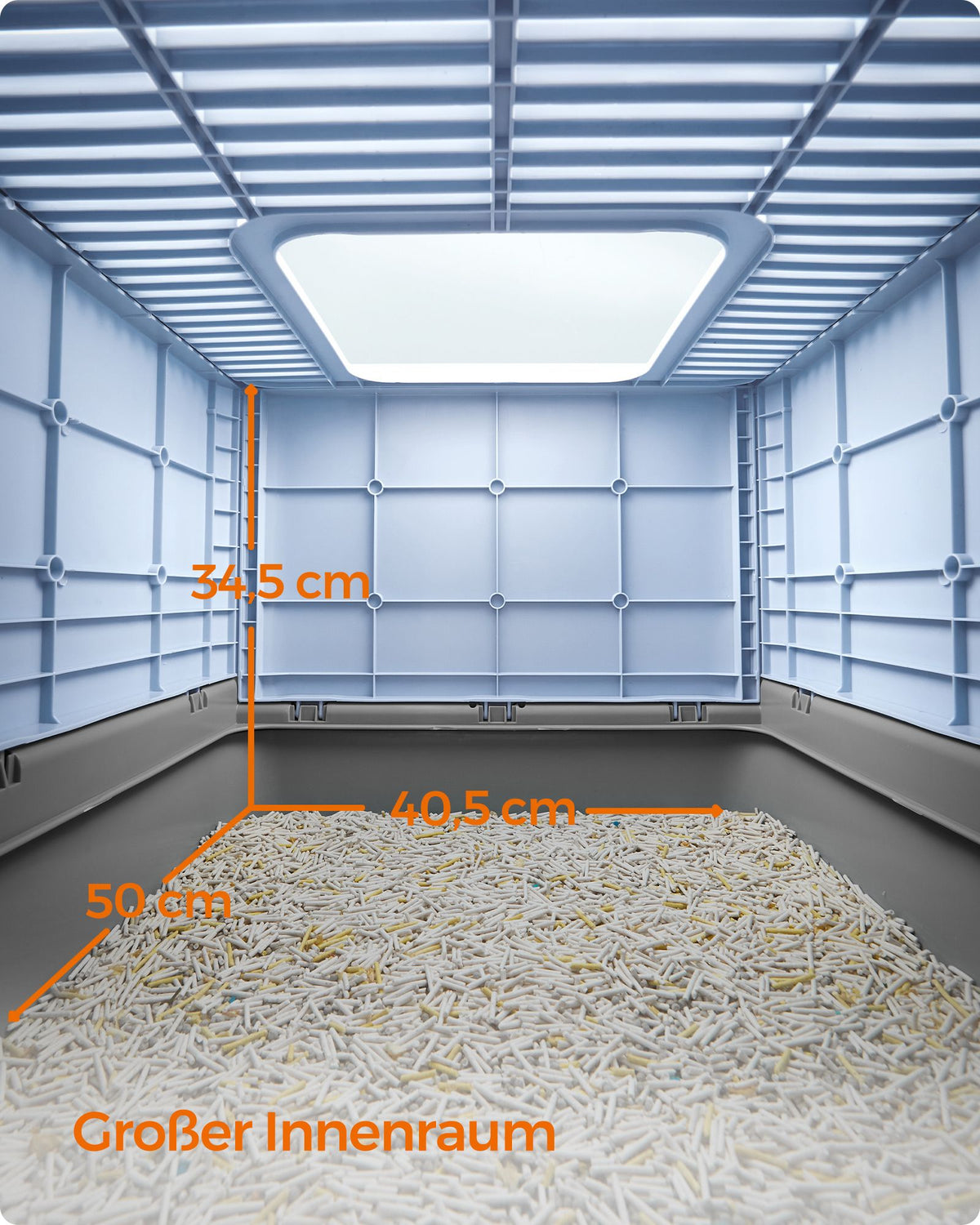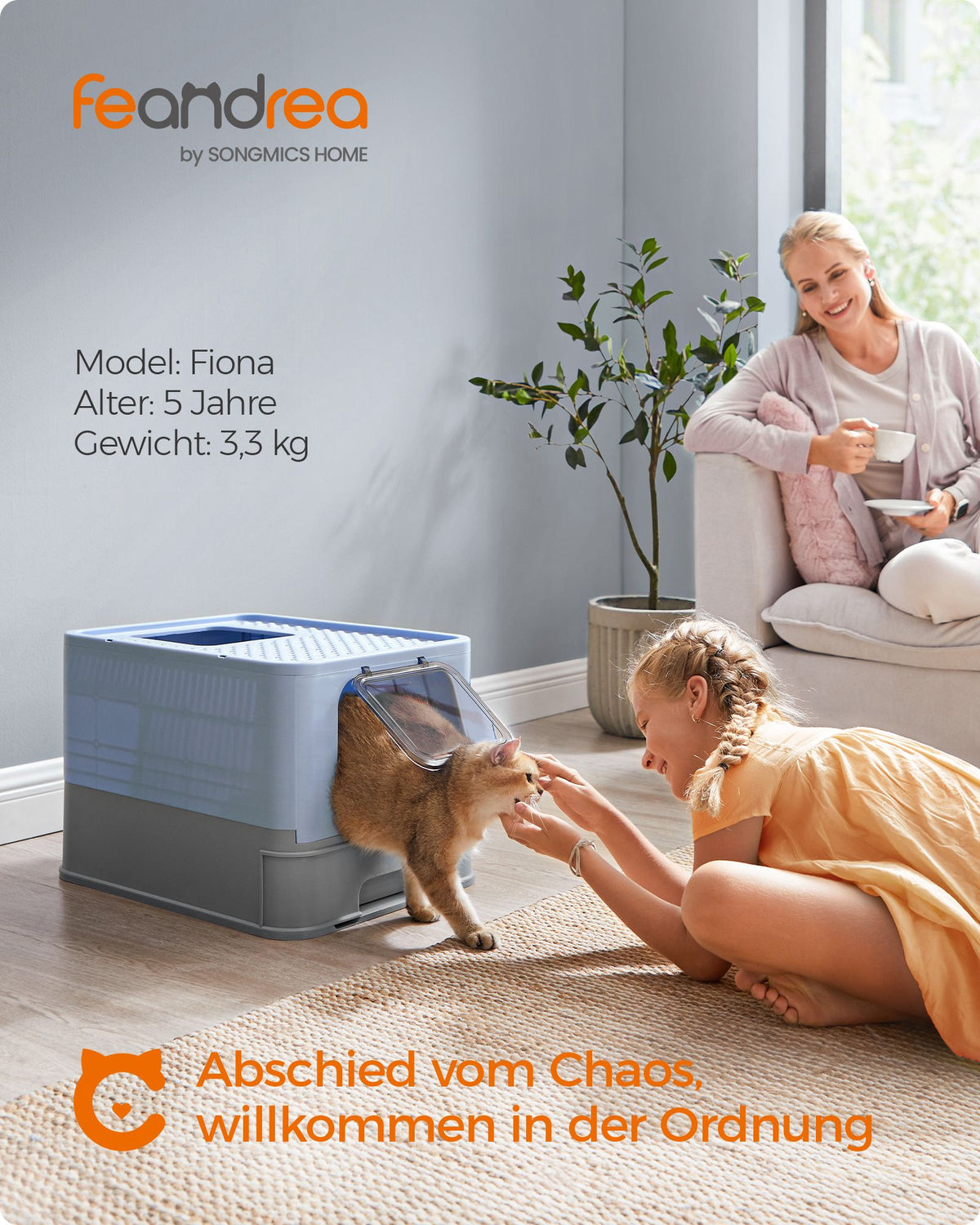 Kattenbak met deksel en schepje ruim lichtblauw-duifgrijs 8 cm