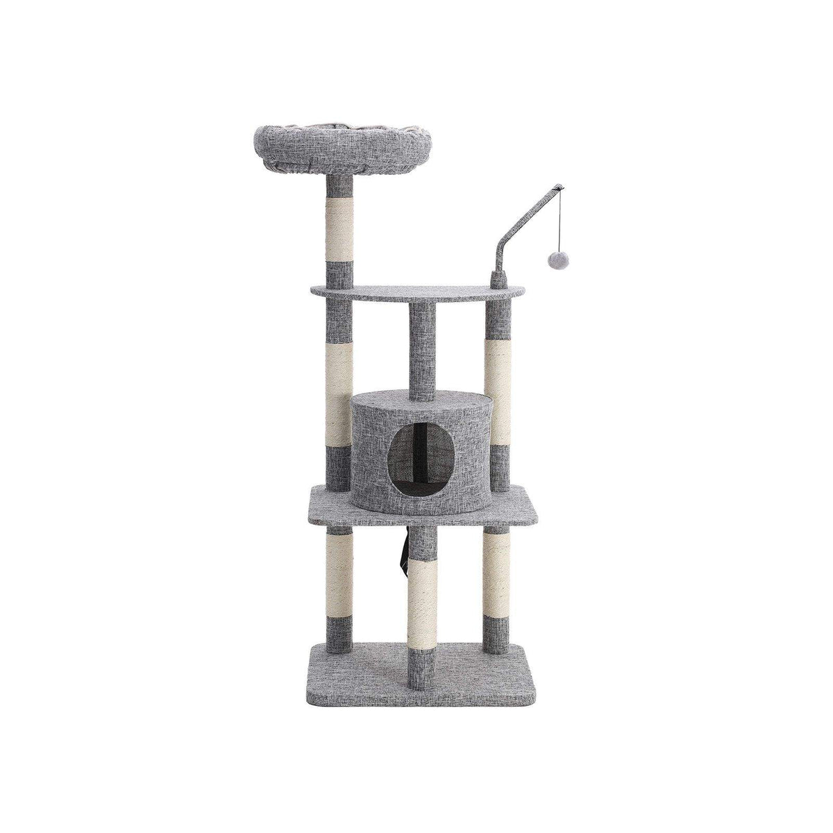 Kattenboom kunstlinnen 136 cm lichtgrijs